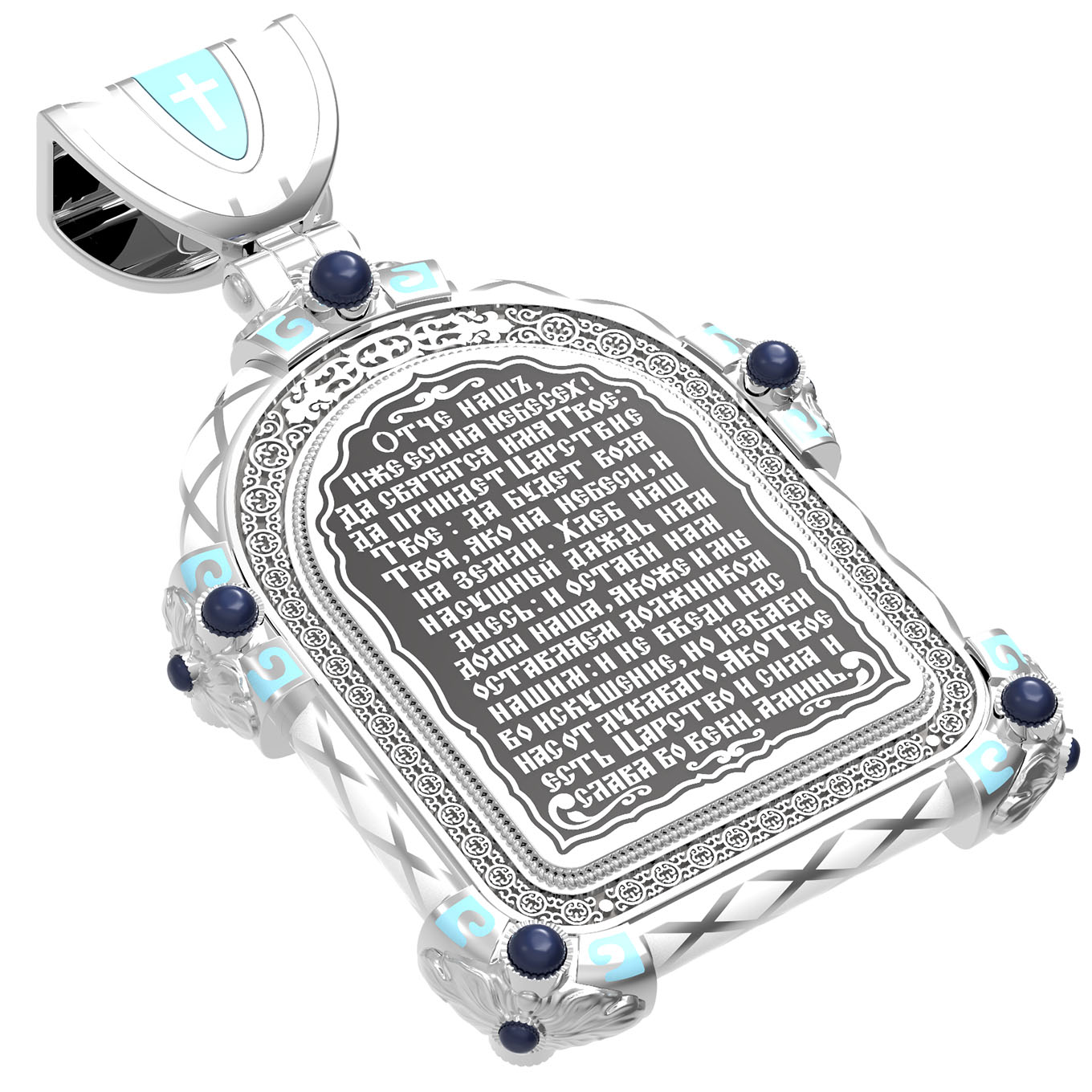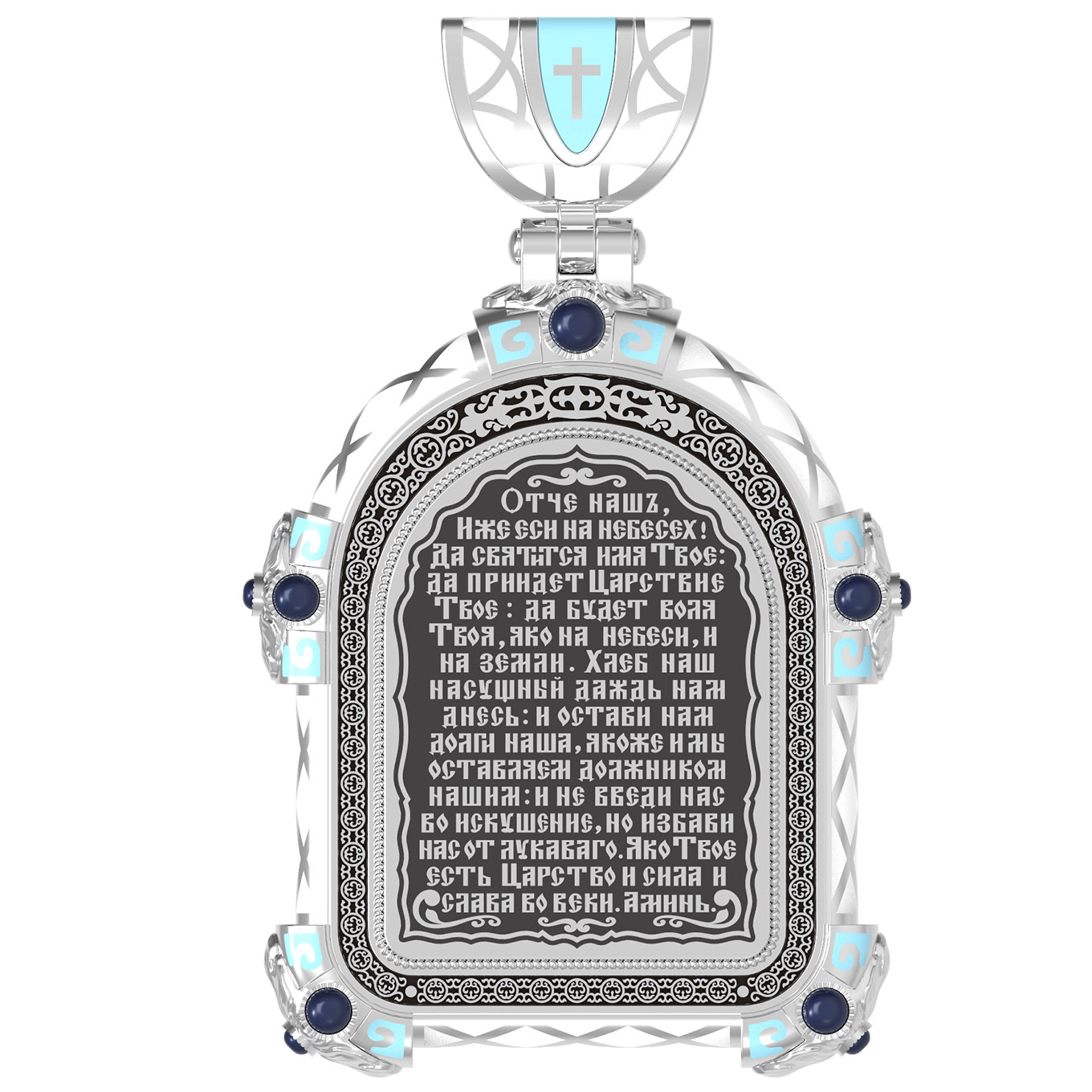 «Отче наш, Иже еси на небесе? х! Да святится имя Твое, да приидет Царствие Твое, да будет воля Твоя, яко на небеси и на земли. Хлеб наш насущный даждь нам днесь; и остави нам долги наша, якоже и мы оставляем должником нашим; и не введи нас во искушение, но избави нас от лукаваго.»