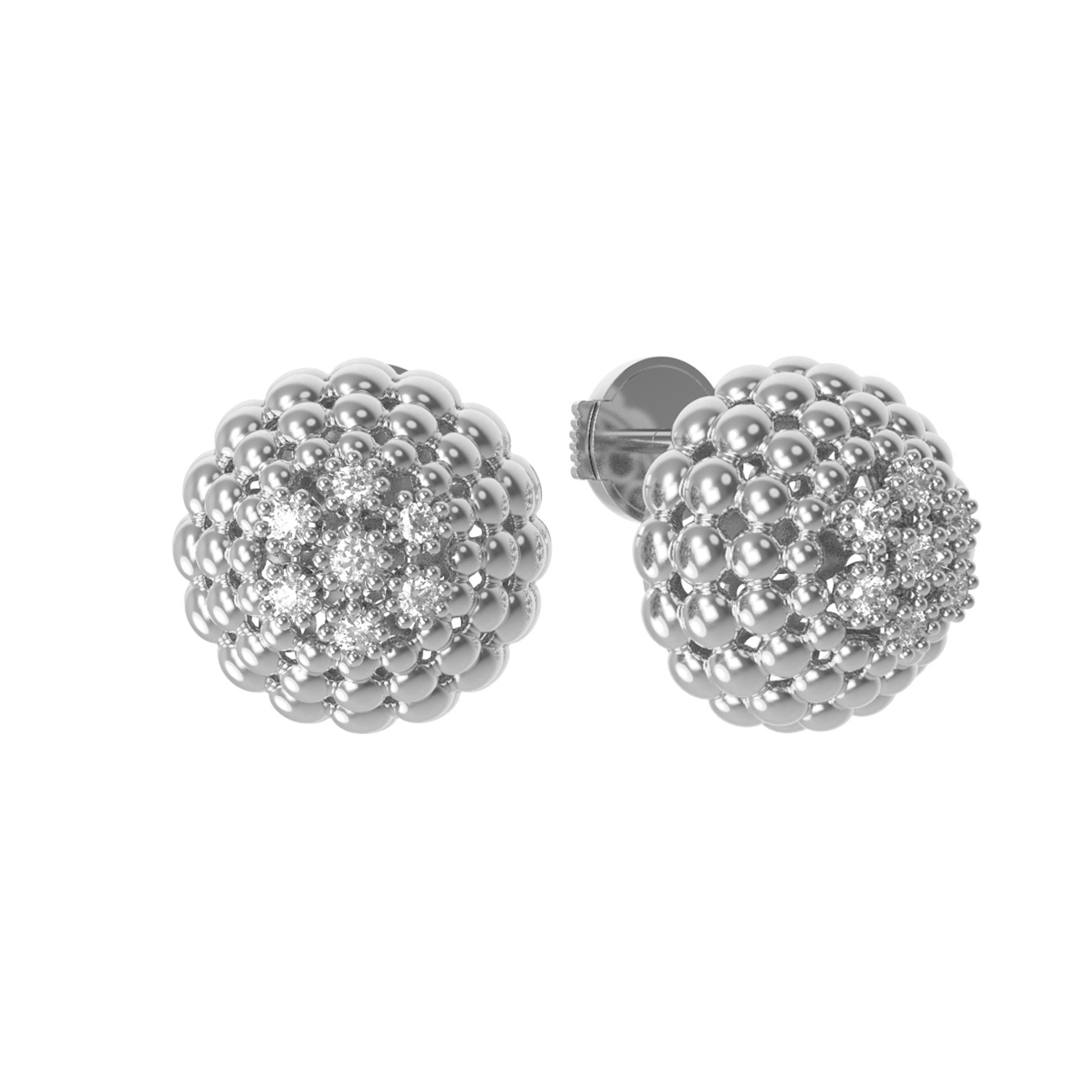 В центре композиции расположены бриллианты круглой огранки с белым цветом вставок, которые эффектно сияют при каждом движении. Всего в серьгах использовано 14 бриллиантов, гармонично интегрированных в объемный дизайн изделия. Это украшение универсально — оно создано как для женщин, так и для мужчин, предпочитающих лаконичные, но выразительные аксессуары. Серьги прекрасно смотрятся как самостоятельный элемент образа, так и в составе комплектов из данной серии.