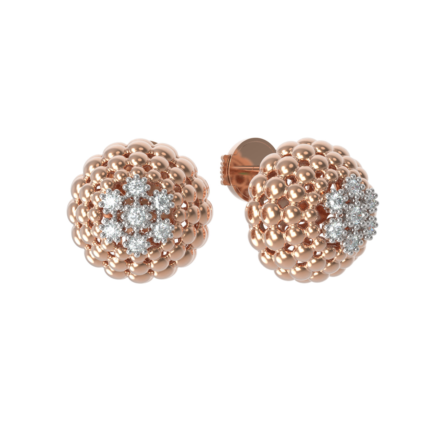 Изысканные серьги из красного золота 585 пробы представляют собой яркий акцент, который подчеркнет ваш безупречный вкус. Дизайн изделия вдохновлен природной эстетикой и напоминает утонченные линии кактуса — округлая форма украшения, усыпанная множеством мелких золотых сфер, создает завораживающую фактуру. Центр композиции украшен сияющими вставками: каждая пара серег инкрустирована 14 бриллиантами круглой огранки, чье холодное белое мерцание контрастирует с теплым оттенком драгоценного металла.