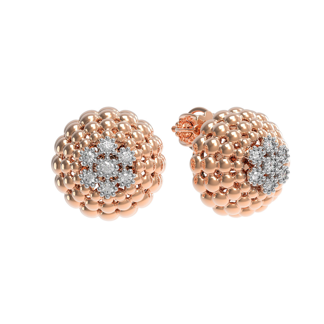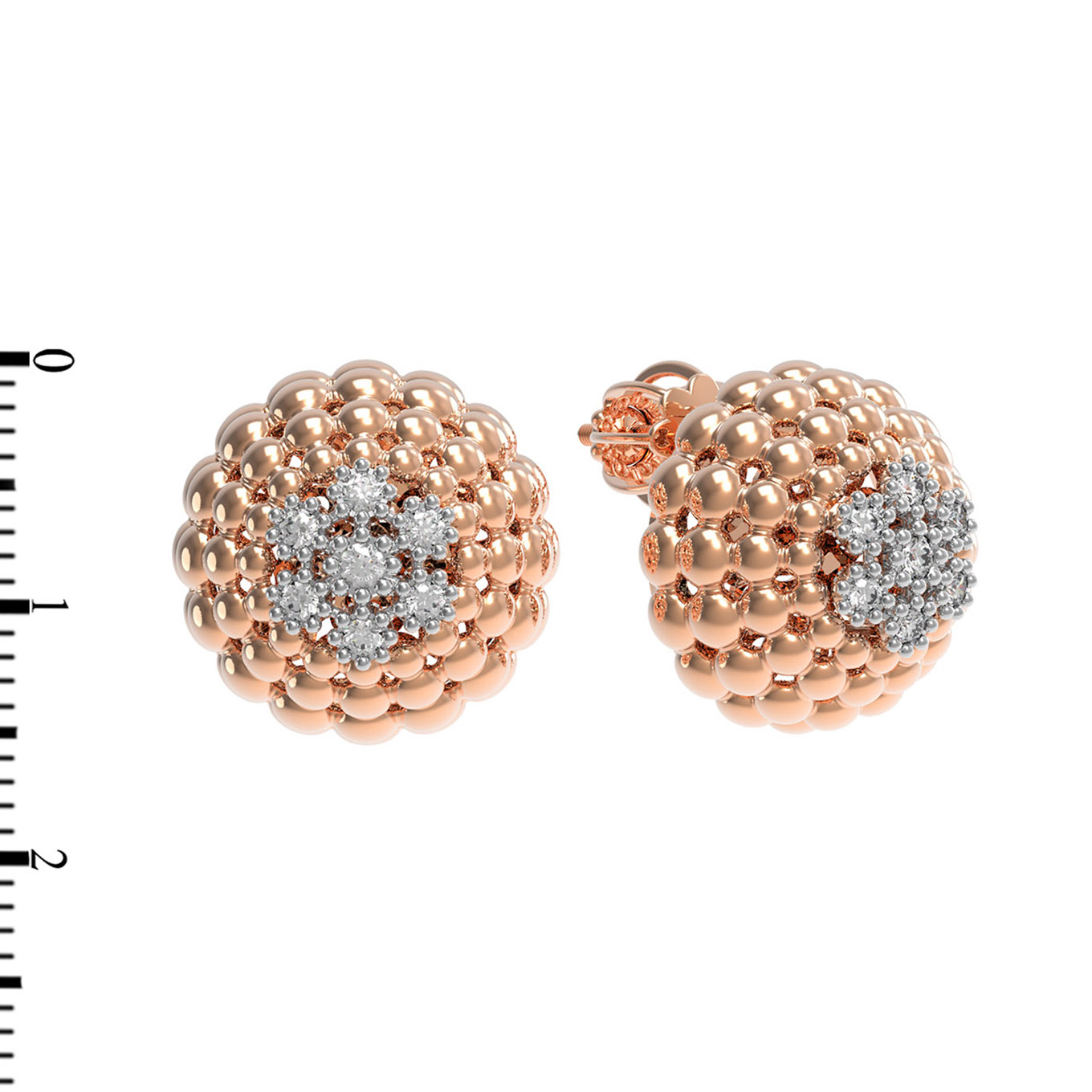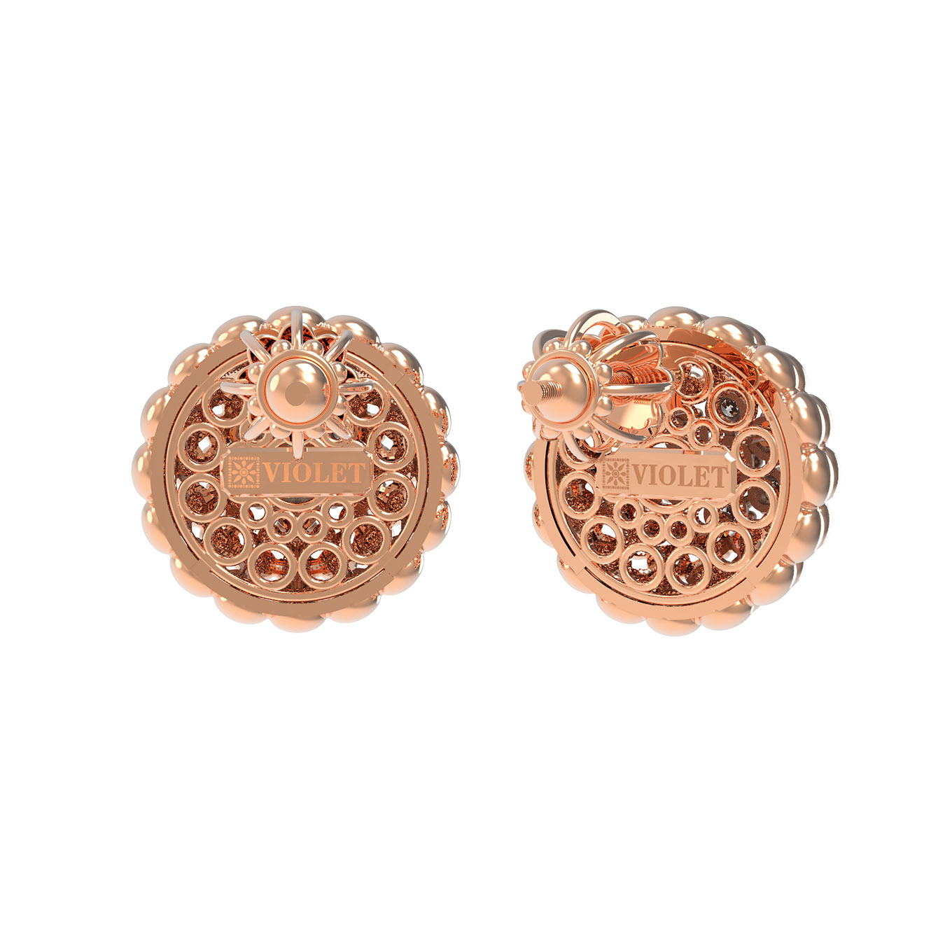 Центральным элементом композиции выступают 14 бриллиантов круглой формы с чистым белым цветом вставок. Драгоценные камни великолепно контрастируют с теплым оттенком красного золота, создавая завораживающую игру света при каждом движении. Тщательно проработанная форма серег придает изделию объем и выразительность.