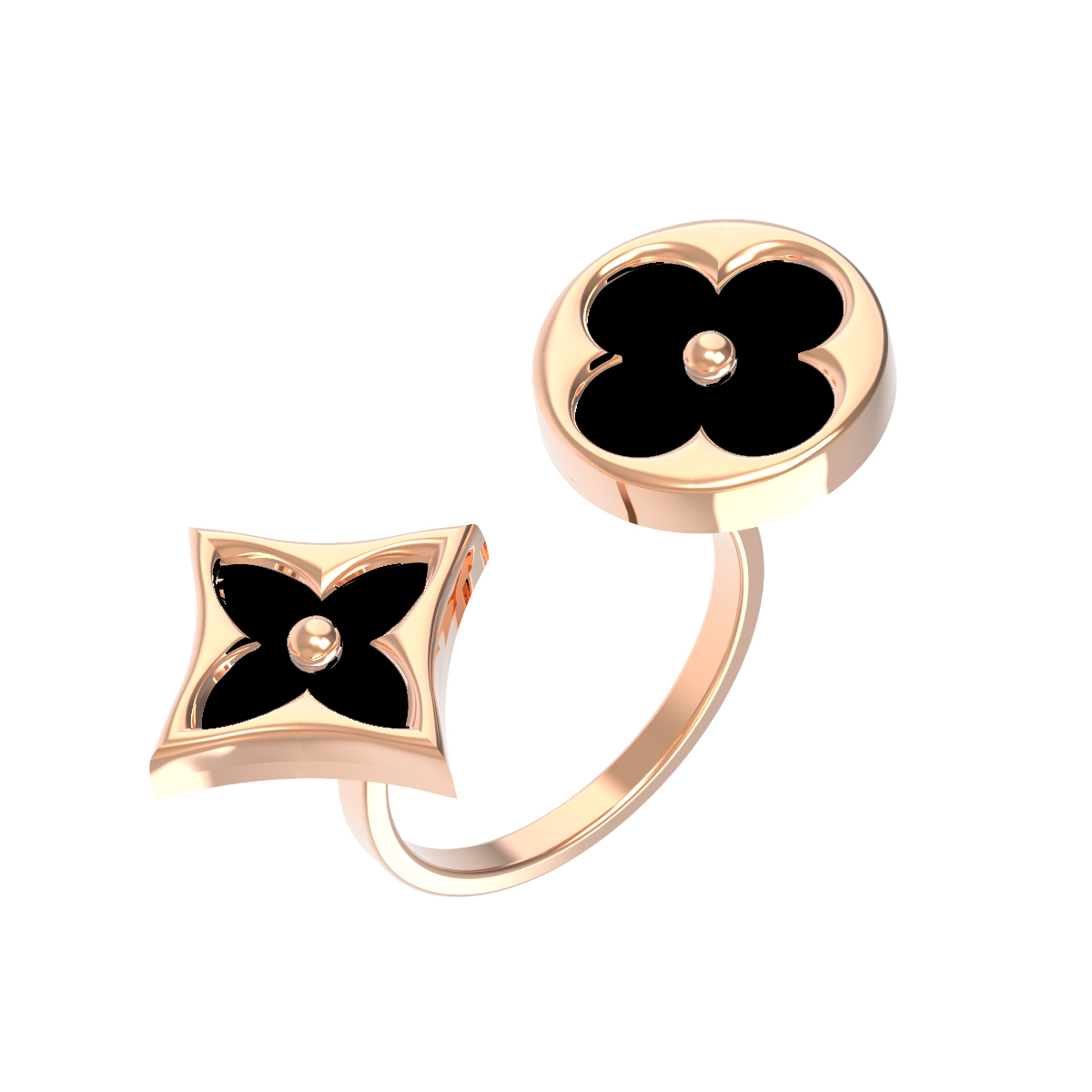 Кольцо из красного золота 585 пробы из коллекции De Luxe — Амальфи — это выразительный аксессуар, который притягивает взгляд своей оригинальной формой и глубоким контрастом материалов. В основе дизайна лежит изящный мотив клевера, придающий украшению символичность и неповторимый шарм. Мастера ювелирного дела объединили в одном изделии две вставки из черного оникса, которые эффектно выделяются на фоне теплого сияния металла.