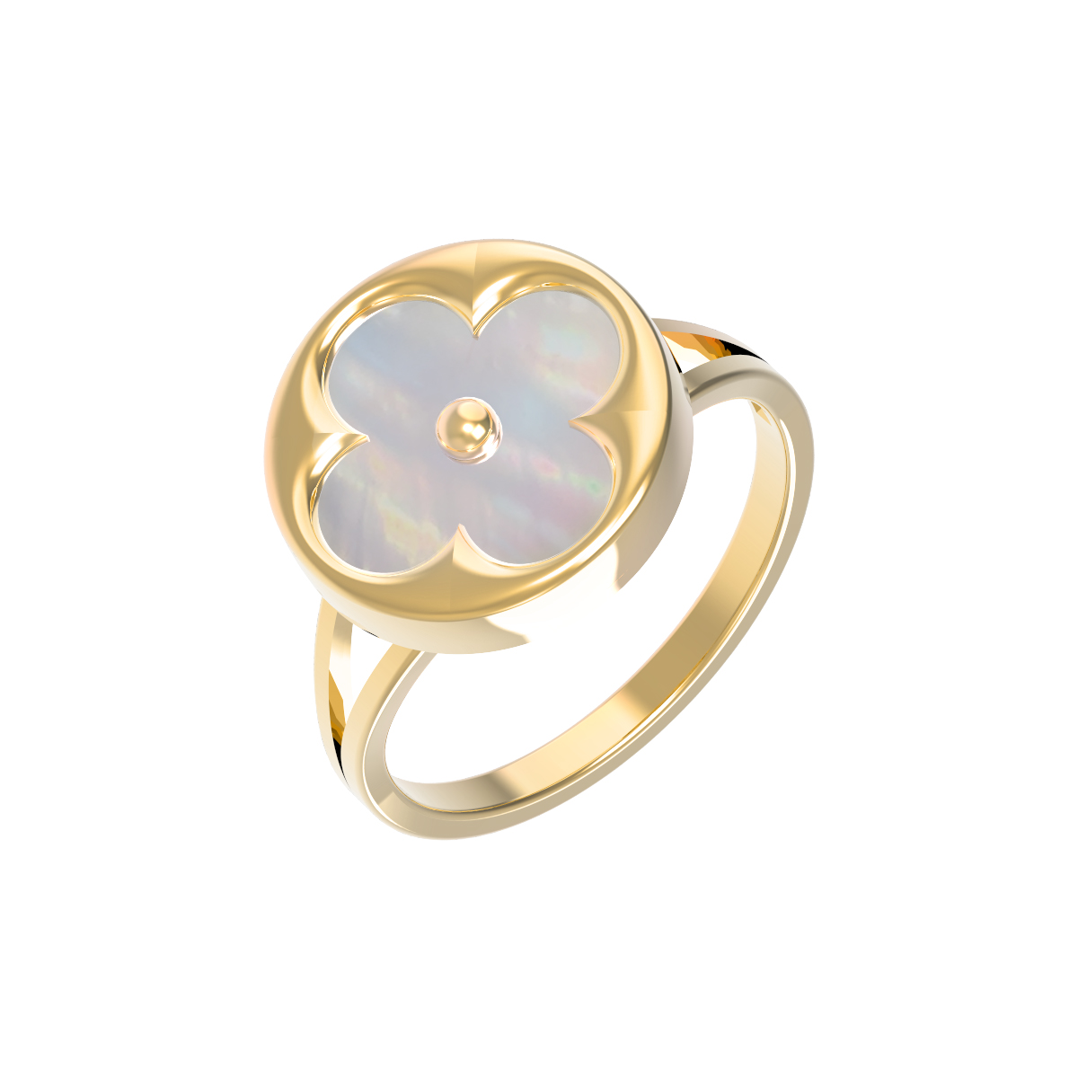 Элегантное кольцо из лимонного золота 585 пробы из коллекции De Luxe — Амальфи станет изысканным акцентом вашего образа. Дизайн украшения выполнен в форме клевера, который всегда остается символом удачи и утонченного стиля. Центральным элементом композиции выступает круглая вставка из перламутра с мягким переливом, обрамленная благородным металлом теплого лимонного оттенка.