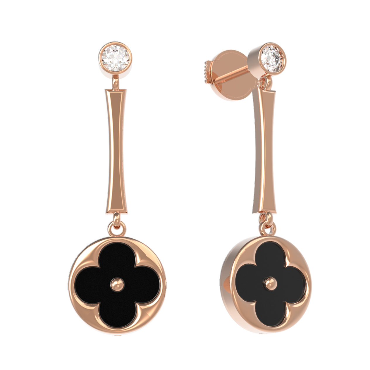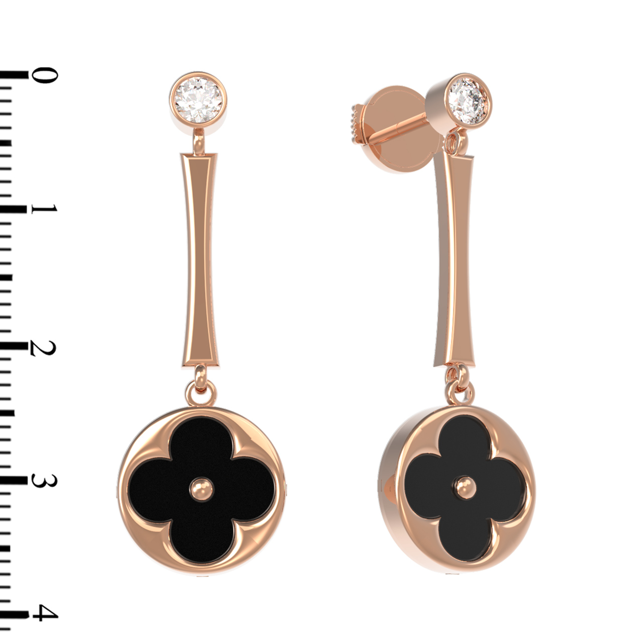 Серьги из золота с ониксом и фианитом станут изысканным завершением вашего образа, подчеркивая безупречный вкус и статус. Это украшение из коллекции De Luxe — Амальфи выполнено в стиле клевер, который давно стал символом удачи и элегантности в мире высокой ювелирной моды. Благородный блеск красного золота 585 пробы гармонично сочетается с глубоким черным цветом натурального оникса, создавая выразительный контраст.