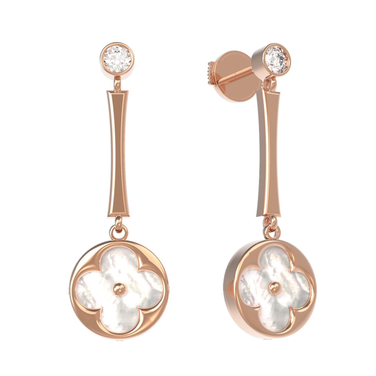 Изящные серьги из красного золота 585 пробы — это воплощение элегантности и утонченного вкуса. Изделие из коллекции De Luxe — Амальфи привлекает внимание своим продуманным дизайном в форме клевера, который символизирует гармонию и удачу. Теплый блеск красного металла подчеркивает глубину и природное сияние перламутра, создавая мягкий контраст с сиянием белого фианита. Круглая форма вставок придает украшению завершенность и классический шарм.