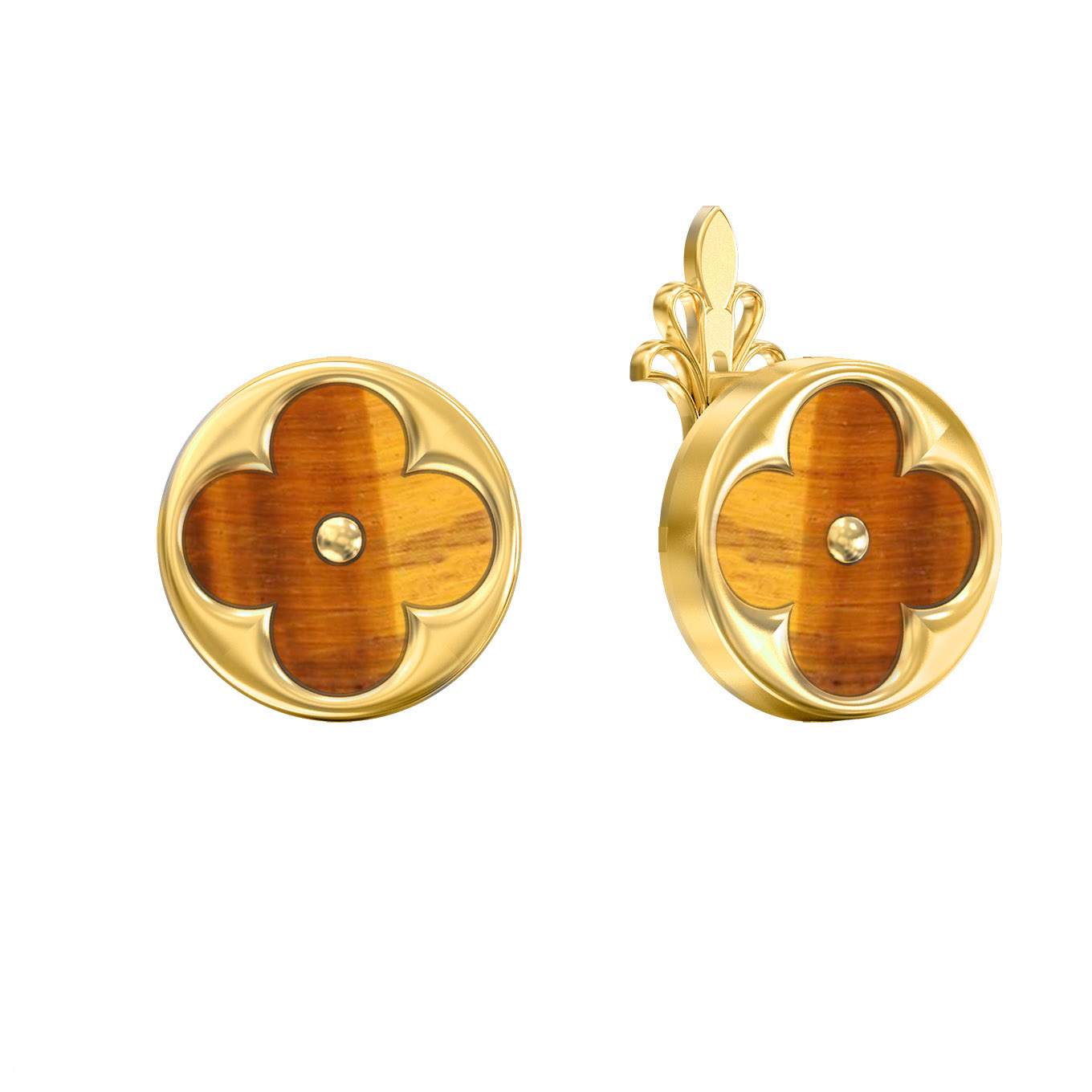 В центре композиции расположены две вставки из тигрового глаза оранжевого оттенка круглой формы, которые мягко переливаются при каждом вашем движении. Насыщенный цвет вставки в обрамлении лимонного золота придает украшению особую глубину и выразительность. Благодаря своему универсальному и сдержанному стилю, эти серьги подходят как для женщин, так и для мужчин, подчеркивая статус и безупречный вкус владельца.