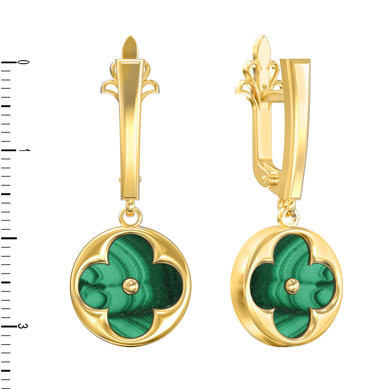 Серьги из лимонного золота c малахитом