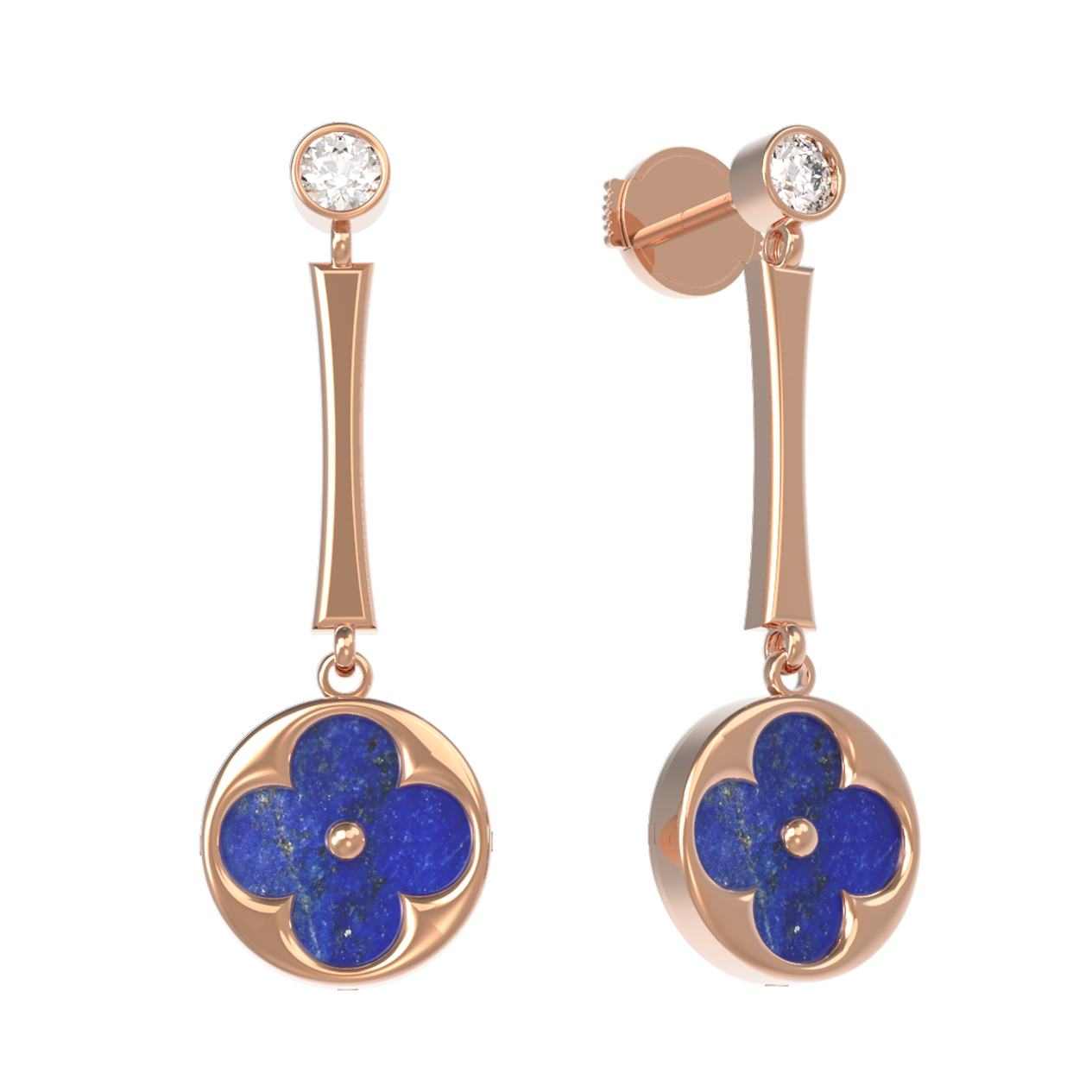 Элегантные серьги из красного золота 585 пробы из коллекции De Luxe — Амальфи станут безупречным акцентом вашего образа. Дизайн украшения воплощает в себе изысканность и гармонию: подвесная часть выполнена в форме клевера, придавая изделию особую выразительность и статусность. Лаконичная форма подчеркнута благородным синим цветом натурального лазурита, который идеально контрастирует с теплым оттенком красного золота.
