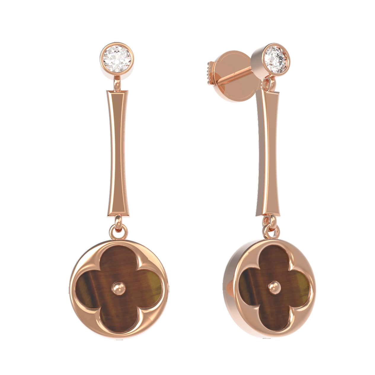 Элегантные и выразительные серьги из коллекции De Luxe — Амальфи станут безупречным акцентом в вашем образе. Дизайн изделия выполнен в актуальной стилистике клевер, которая неизменно привлекает внимание своей лаконичностью и символизмом. Основа украшения выполнена из благородного красного золота 585 пробы, чей теплый оттенок гармонично сочетается с глубоким цветом натурального тигрового глаза. Этот оранжевый камень придает изделию природную выразительность и неповторимый шарм.