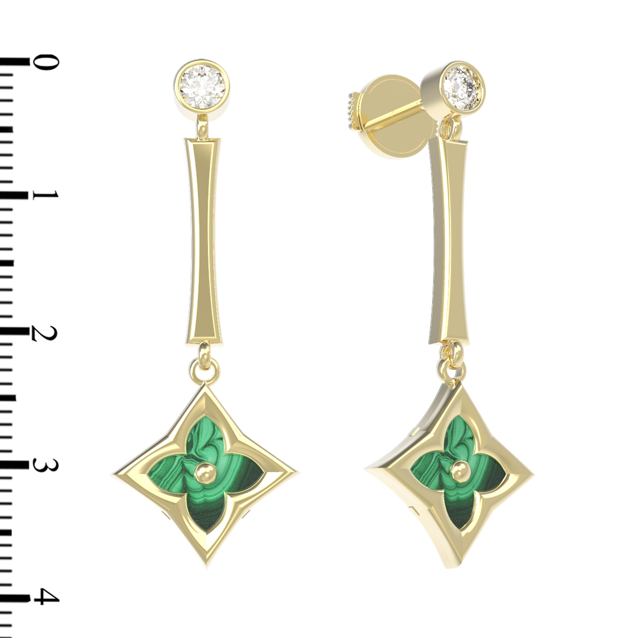 Серьги из лимонного золота c фианитом и малахитом