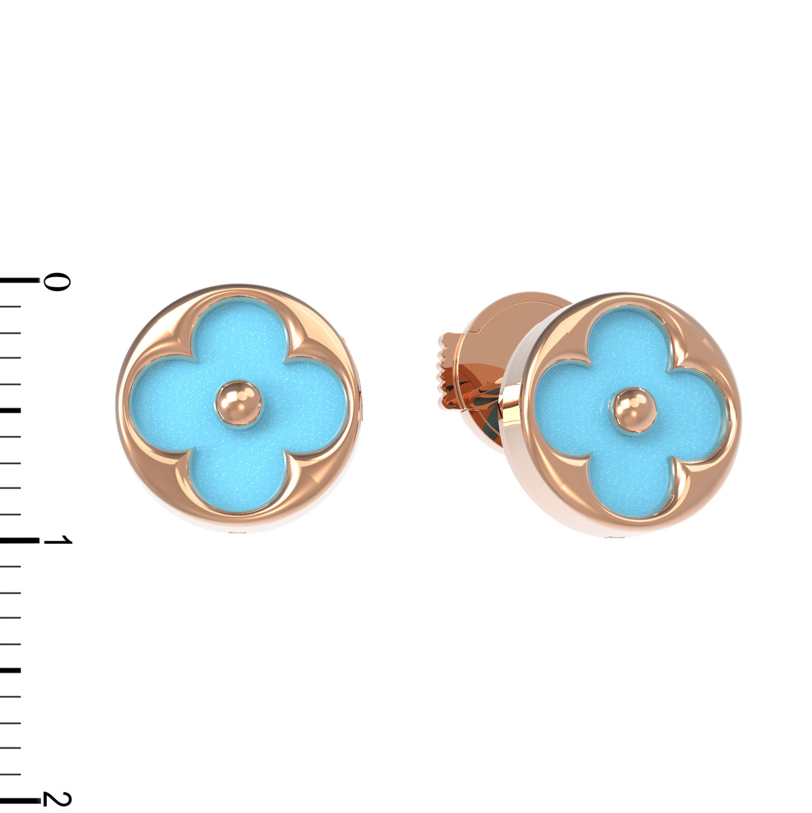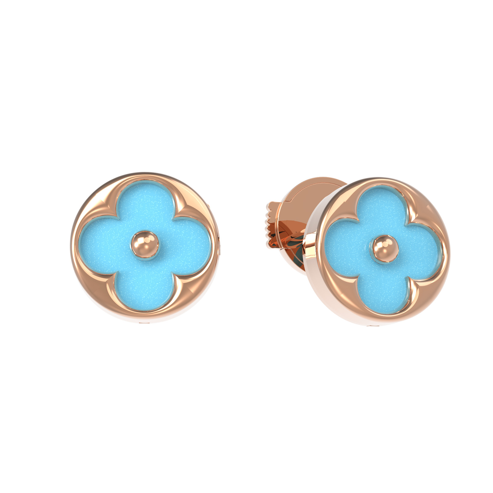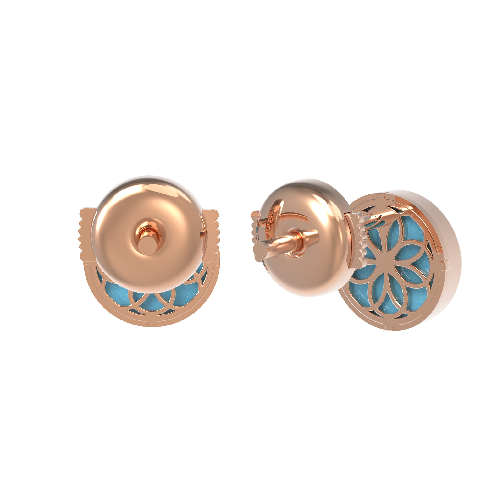 Изысканные серьги из красного золота 585 пробы — это воплощение элегантности и утонченного стиля. Дизайн украшения, выполненный в форме цветка клевера, придает изделию особое очарование и символизирует гармонию. В центре композиции расположены две вставки из натуральной бирюзы яркого бирюзового цвета, чья круглая форма гармонично дополняет мягкие линии основы. Красное золото подчеркивает насыщенный оттенок камней, создавая благородный контраст, который привлекает внимание.
