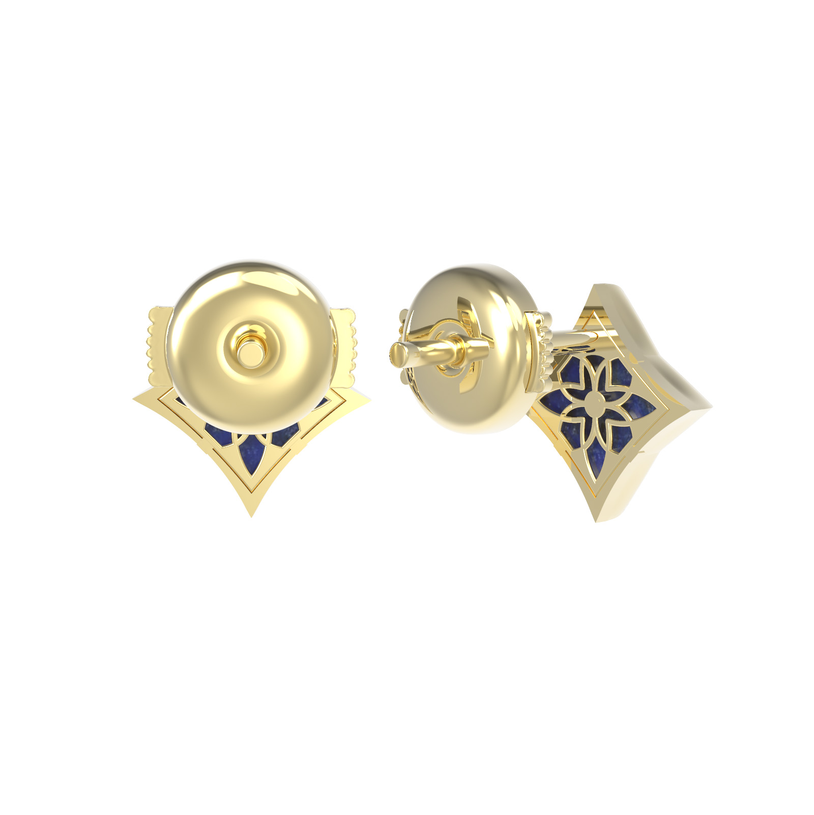 В центре каждого изделия — вставка из натурального лазурита синего цвета в форме ромба, что подчеркивает геометрию и стиль украшения. Лазурит обладает природной притягательностью и добавляет изделию особую глубину. Качественная обработка материала и классический дизайн делают эти серьги универсальными: они прекрасно подходят как женщинам, так и мужчинам, предпочитающим утонченные аксессуары.