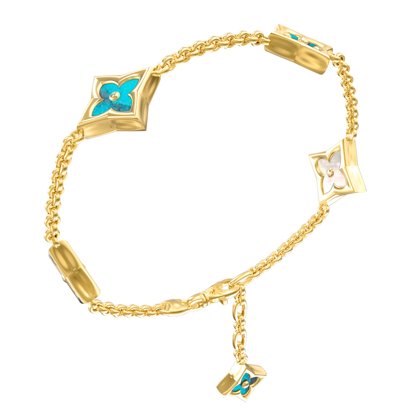 Браслет из лимонного золота c бирюзой и перламутром