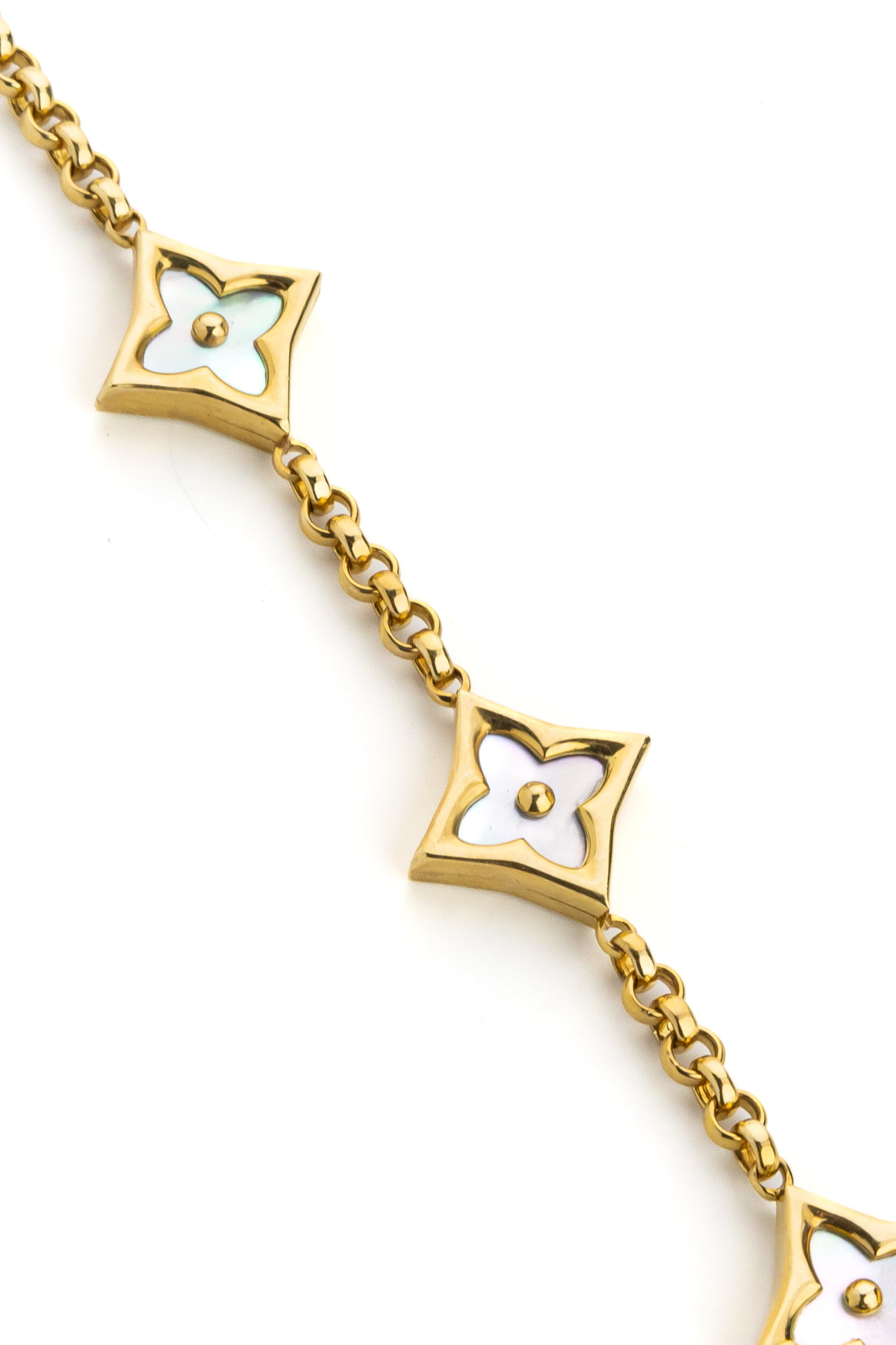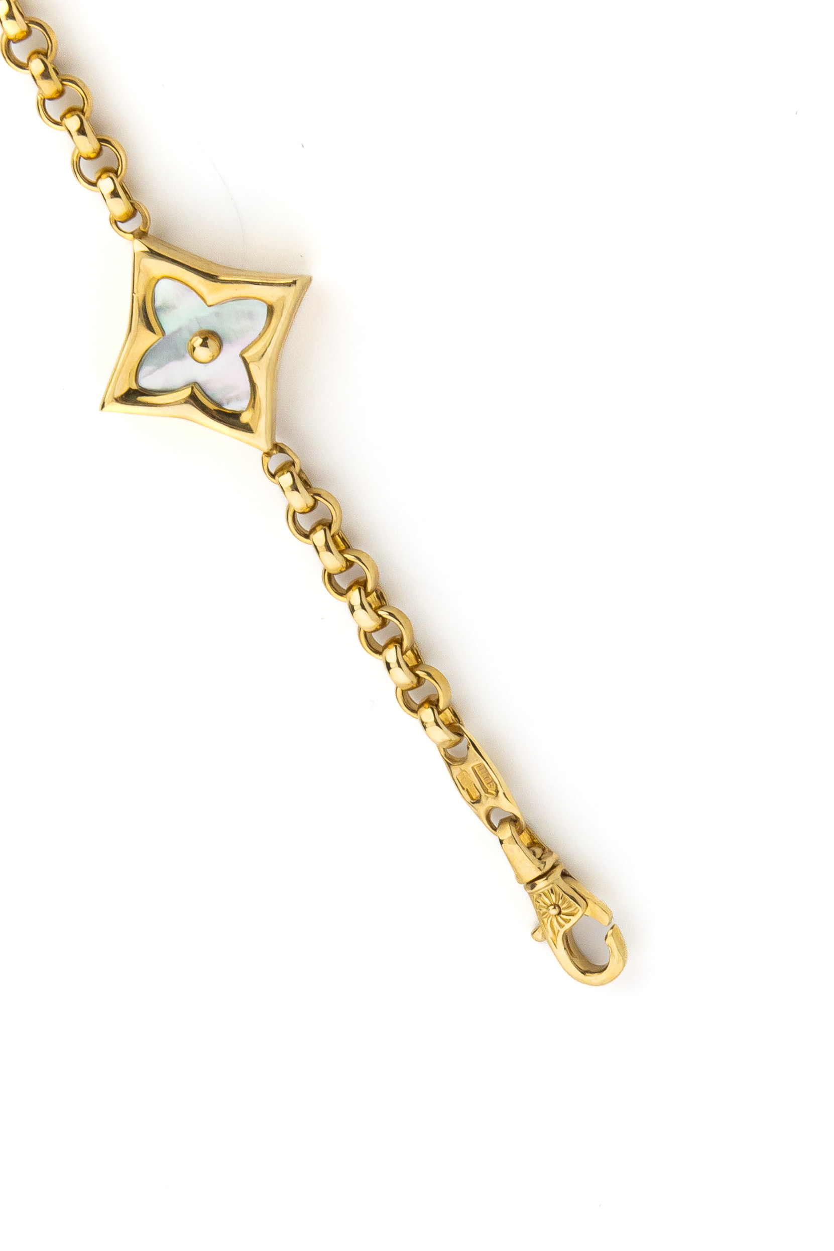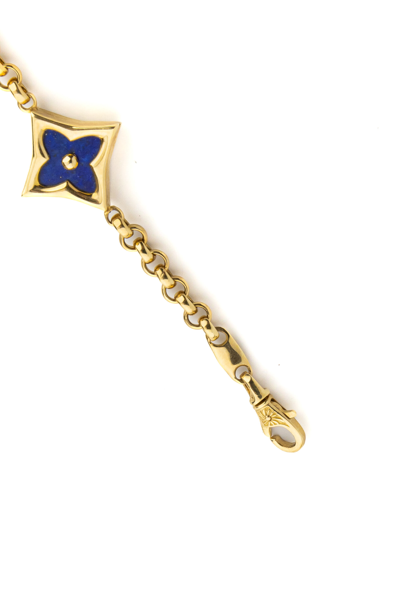 Продуманная конструкция браслета обеспечивает комфортную посадку на запястье. Это изделие прекрасно смотрится как самостоятельный аксессуар, так и в сочетании с другими украшениями. Если вы ищете возможность создания завершенного образа, обратите внимание, что данная модель входит в состав комплектов, позволяющих гармонично дополнить ваш стиль серьгами или колье в аналогичной стилистике. Лимонное золото в сочетании с лазуритом и перламутром выглядит свежо и благородно, подчеркивая статус и отличный вкус владельца.