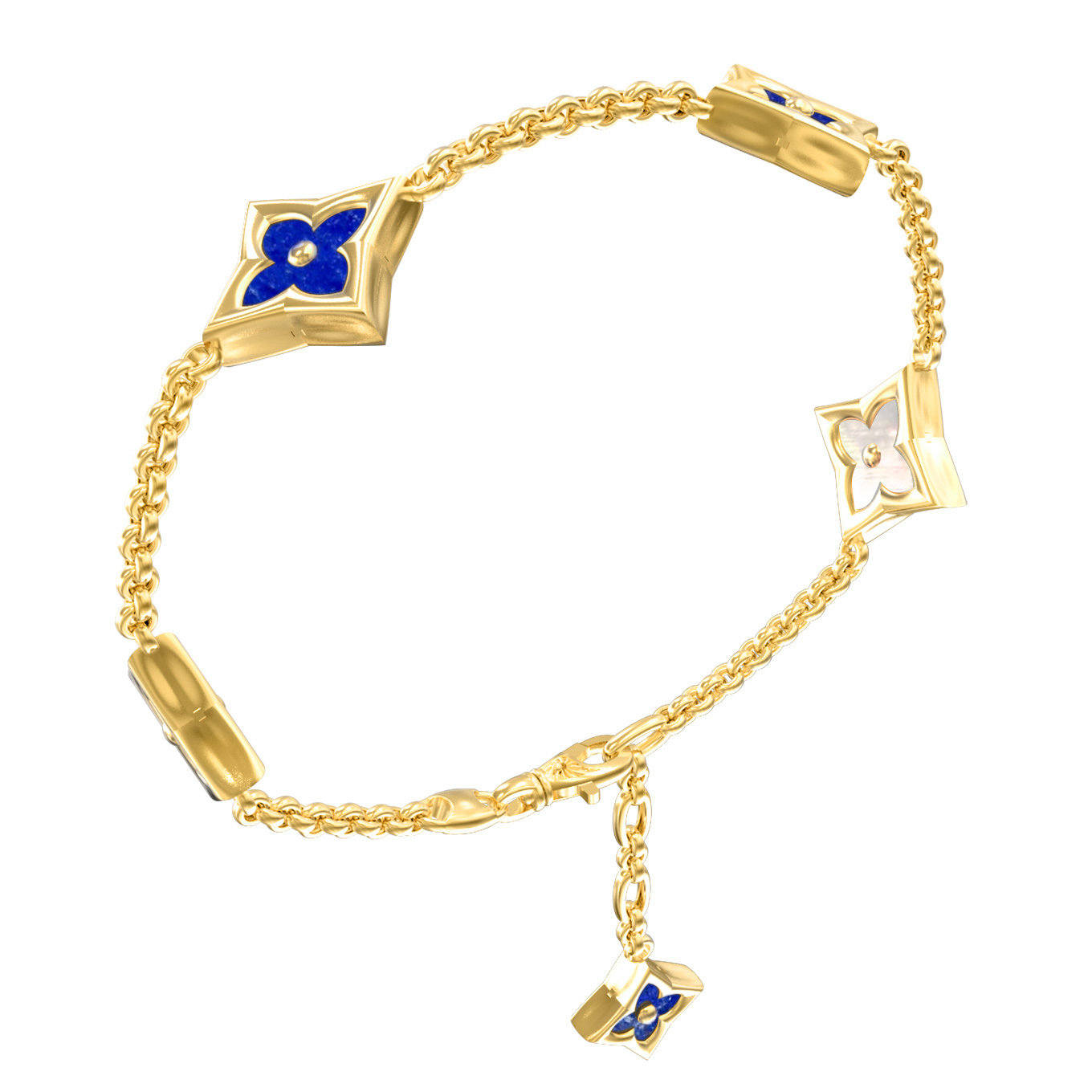 Браслет из лимонного золота c лазуритом и перламутром