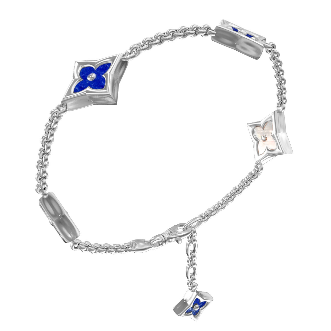 В украшении использовано 5 вставок, выполненных в оригинальной форме ромба. Глубокий синий оттенок лазурита эффектно контрастирует с нежным переливом перламутра, создавая завораживающую игру цвета. Лаконичная цепочка подчеркивает изящество исполнения, делая этот браслет универсальным аксессуаром. Благодаря продуманному дизайну, данная модель одинаково гармонично дополнит образ как для женщин, так и для мужчин.