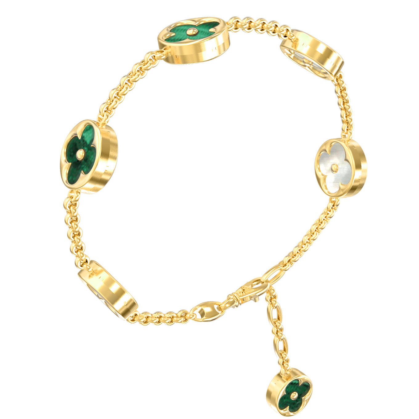 Браслет из лимонного золота c малахитом и перламутром