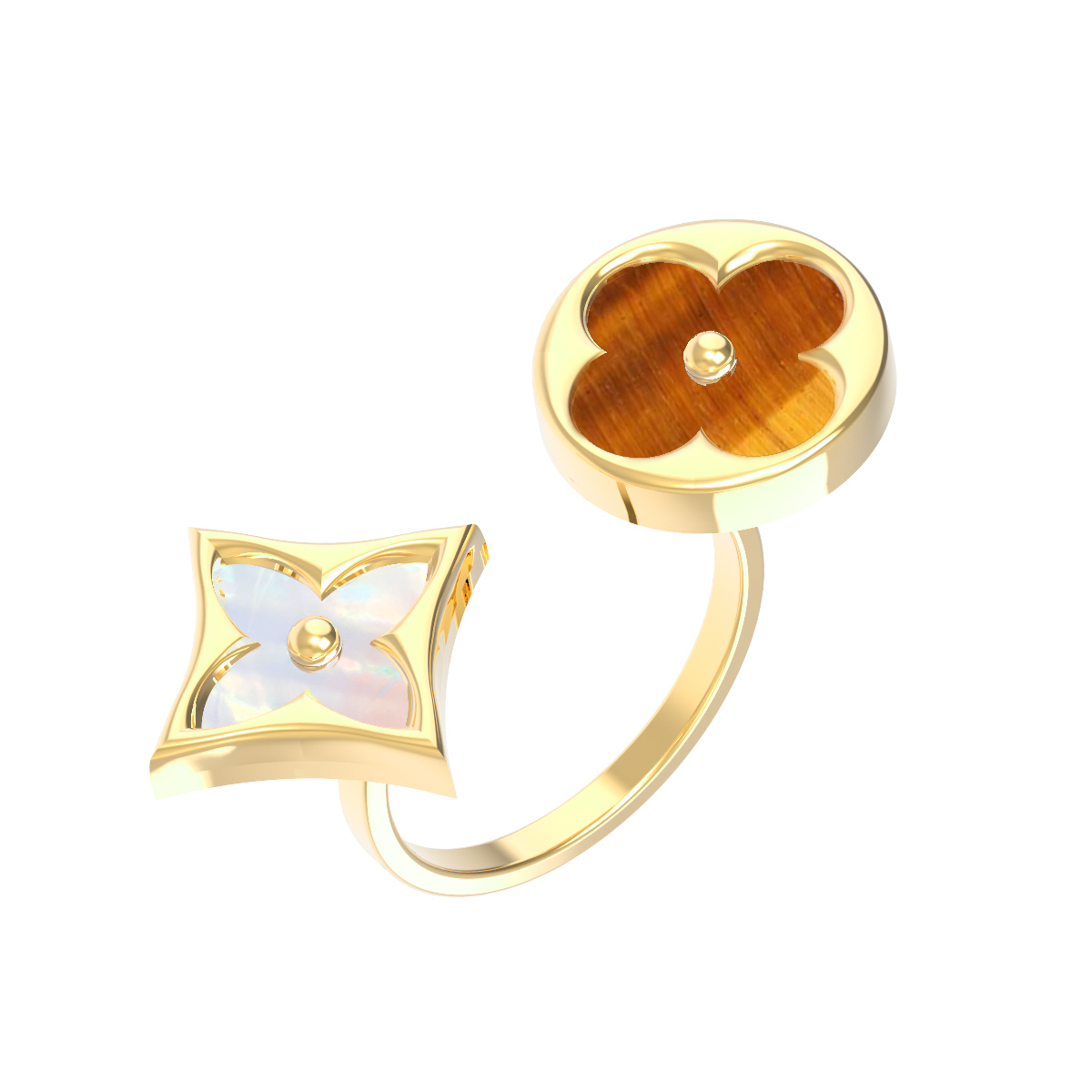 Кольцо из лимонного золота c тигровым глазом и перламутром