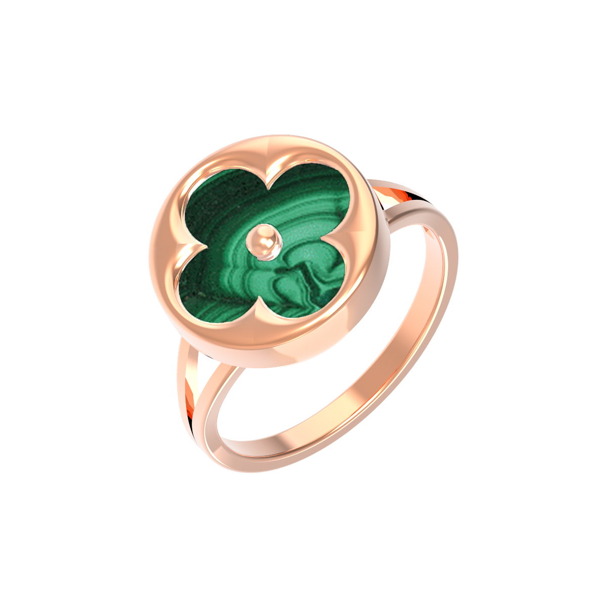 Элегантное кольцо из красного золота 585 пробы станет утонченным дополнением вашего образа. Это изделие, представленное в коллекции De Luxe — Амальфи, выполнено в классическом дизайне клевер, который подчеркивает безупречный вкус владельца. Глубокий, насыщенный зеленый цвет вставки из натурального малахита притягивает взгляд своей уникальной текстурой и природной красотой.