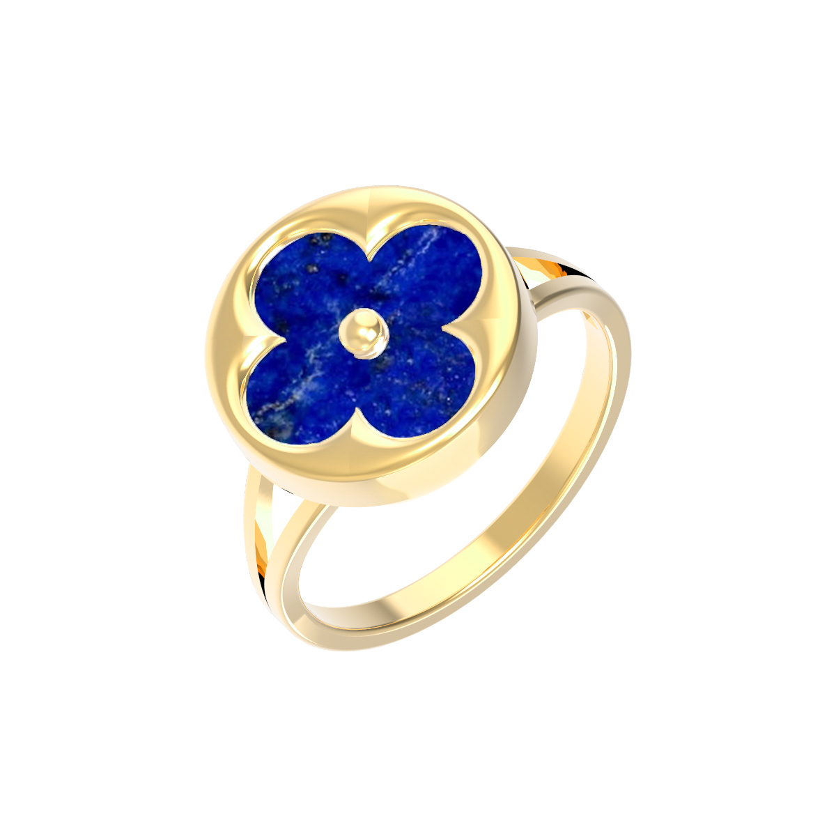 Элегантное кольцо из лимонного золота 585 пробы из коллекции De Luxe — Амальфи станет достойным дополнением вашего ювелирного гардероба. Дизайнеры воплотили в этом изделии изысканный образ клевера, который привносит в облик нотки утонченности и благородства. Центральным акцентом украшения является глубокая вставка из лазурита синего цвета круглой формы, которая гармонично контрастирует с теплым сиянием лимонного металла.