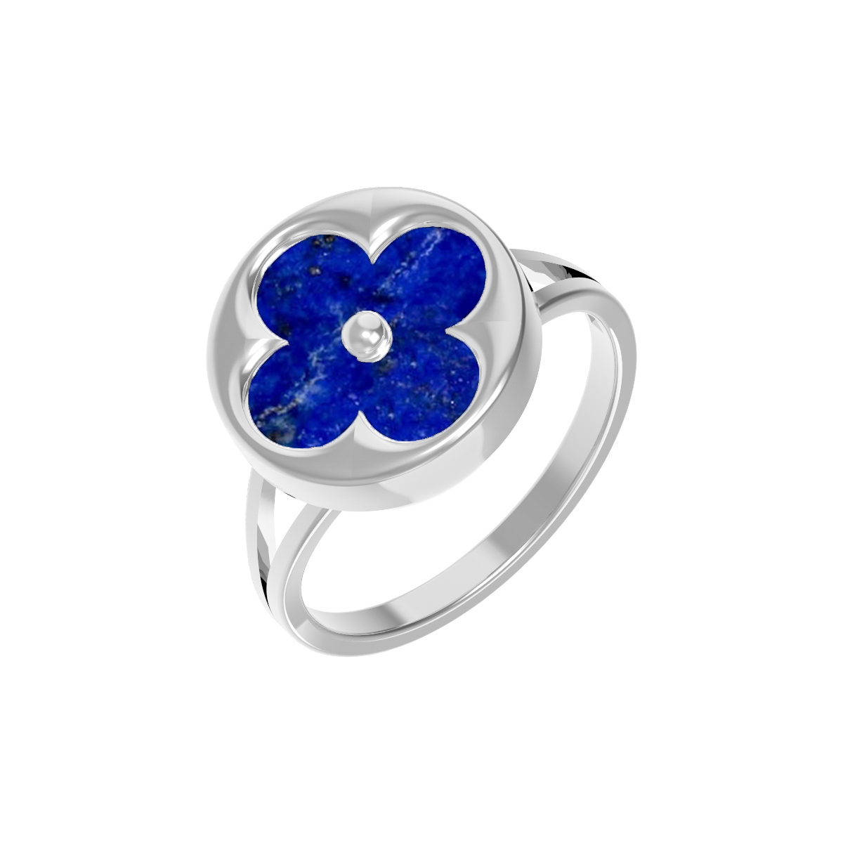 Элегантное кольцо из белого золота 585 пробы из коллекции De Luxe — Амальфи станет изысканным акцентом вашего образа. Дизайн украшения выполнен в форме клевера — утонченного символа, который никогда не выходит из моды. В центре композиции расположена одна вставка из натурального лазурита глубокого синего цвета. Круглая форма вставки идеально гармонирует с плавными линиями оправы, подчеркивая благородный блеск белого металла.