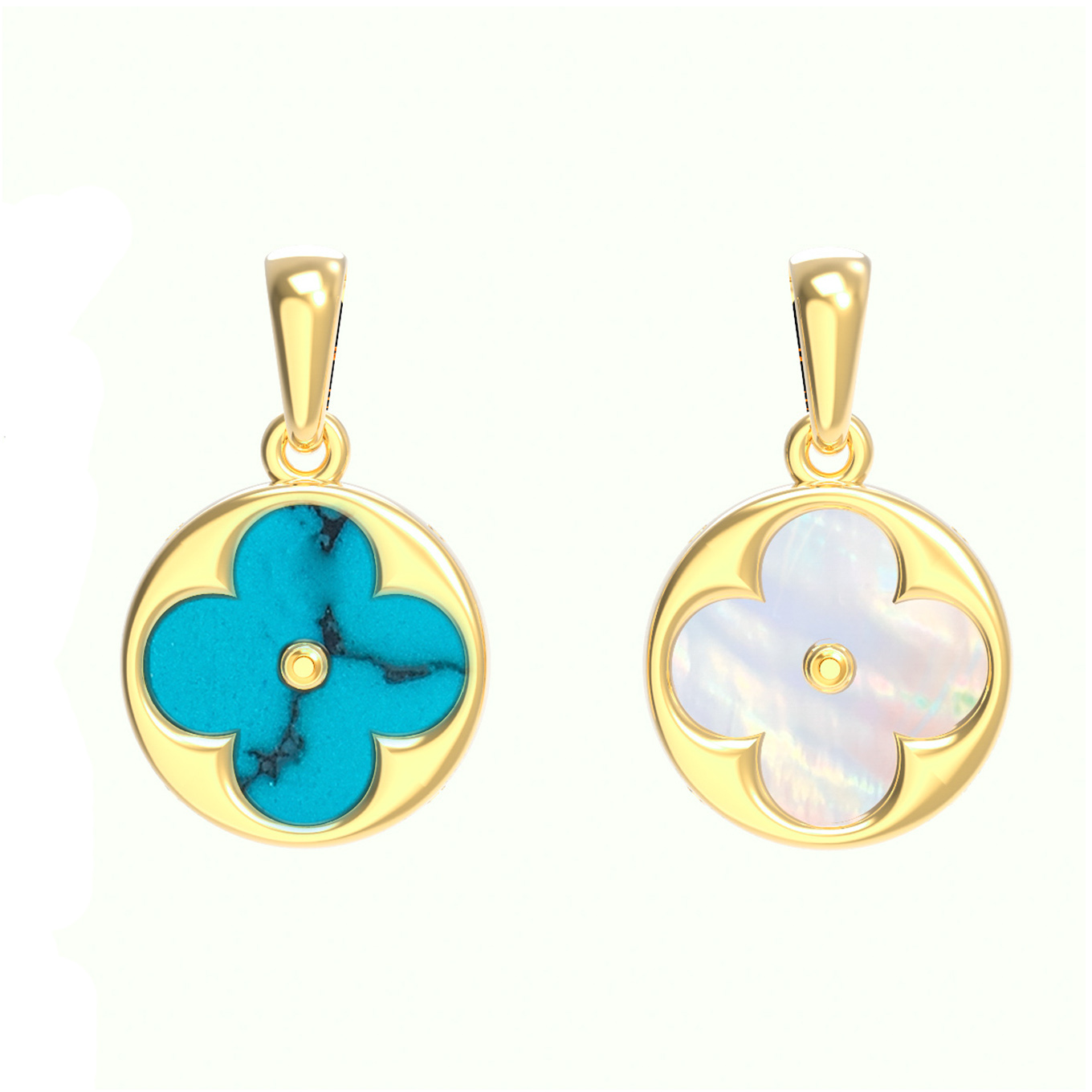 Особенность этого ювелирного изделия заключается в его универсальности: подвеска украшена вставкой в форме круга, где сочетаются насыщенная бирюза и нежный перламутр. Бирюзовый цвет камня дарит ощущение свежести, а перламутровое сияние добавляет украшению глубины и элегантности. Это уникальное сочетание позволяет носить подвеску как самостоятельный акцент, так и в рамках продуманных комплектов.