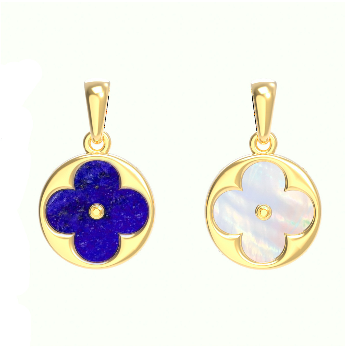 Изысканная подвеска из лимонного золота 585 пробы из коллекции De Luxe — Амальфи станет утонченным дополнением вашего образа. Дизайн изделия выполнен в форме клевера, который заключен в изящную круглую оправу. Благородный оттенок лимонного золота гармонично подчеркивает глубину и красоту вставок. В данной модели использованы две контрастные вставки: насыщенный синий лазурит и нежный переливающийся перламутр. Круглая форма вставок в сочетании с мастерской проработкой деталей придает украшению особый шарм.