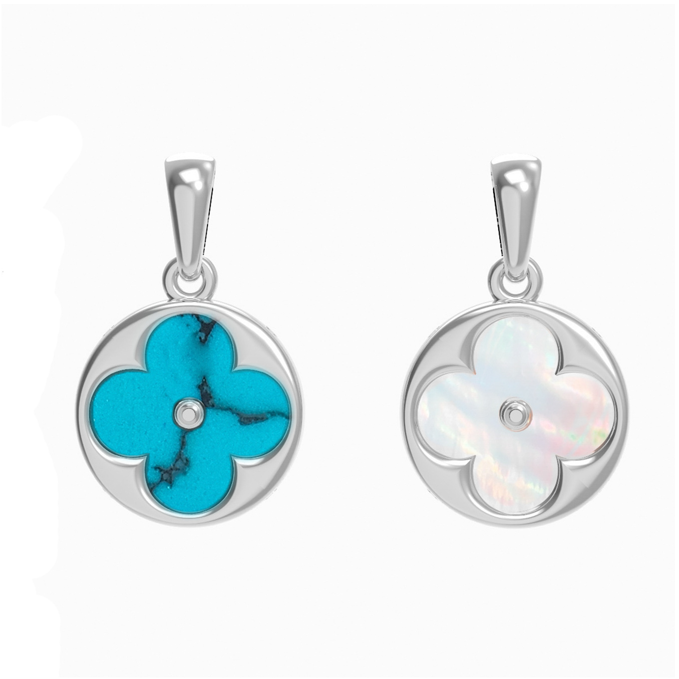 Подвеска из белого золота c бирюзой и перламутром