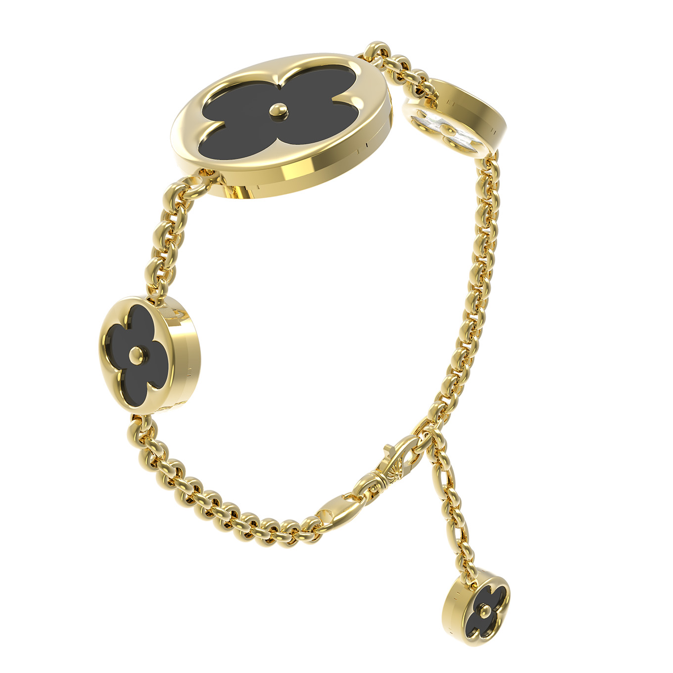 Откройте для себя воплощение утонченности в браслете из лимонного золота 585 пробы, вошедшем в коллекцию De Luxe — Амальфи. Это украшение создано для тех, кто ценит гармонию формы и благородство материалов. Основой композиции выступает изысканный дизайн в виде четырехлистного клевера — символа удачи, который придает изделию особое очарование и эстетическую завершенность. Браслет гармонично сочетает в себе сияние лимонного золота и контрастную глубину вставок из оникса и перламутра.