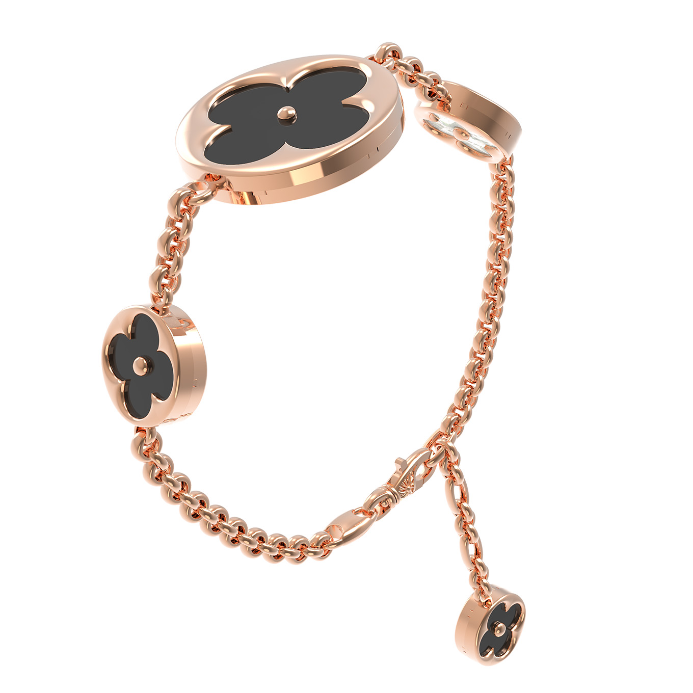 Дизайн изделия вдохновлен лаконичной формой клевера, которая давно стала символом утонченного вкуса. Браслет украшают 4 вставки круглой формы, которые мягко переливаются при каждом движении руки, привлекая восхищенные взгляды. Благодаря своей универсальной эстетике и стильному исполнению, модель подходит как для женщин, так и для мужчин, желающих подчеркнуть свою индивидуальность качественным ювелирным аксессуаром.