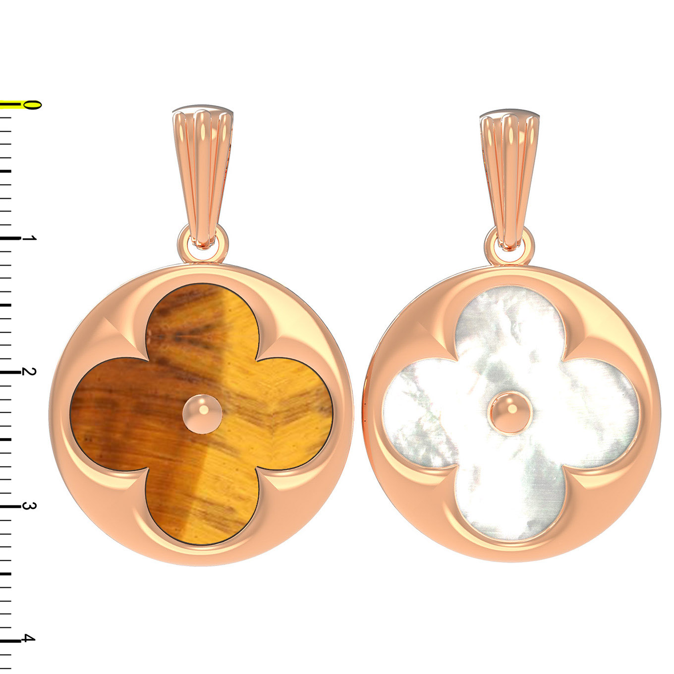 Главным акцентом украшения выступает вставка, сочетающая в себе природное тепло тигрового глаза и нежное мерцание перламутра. Контрастная игра оранжевого оттенка тигрового глаза и классического перламутрового тона создает выразительный визуальный эффект. Каждая вставка имеет круглую форму, что подчеркивает лаконичность композиции. В изделии предусмотрена одна акцентная вставка, гармонично дополняющая общий дизайн.