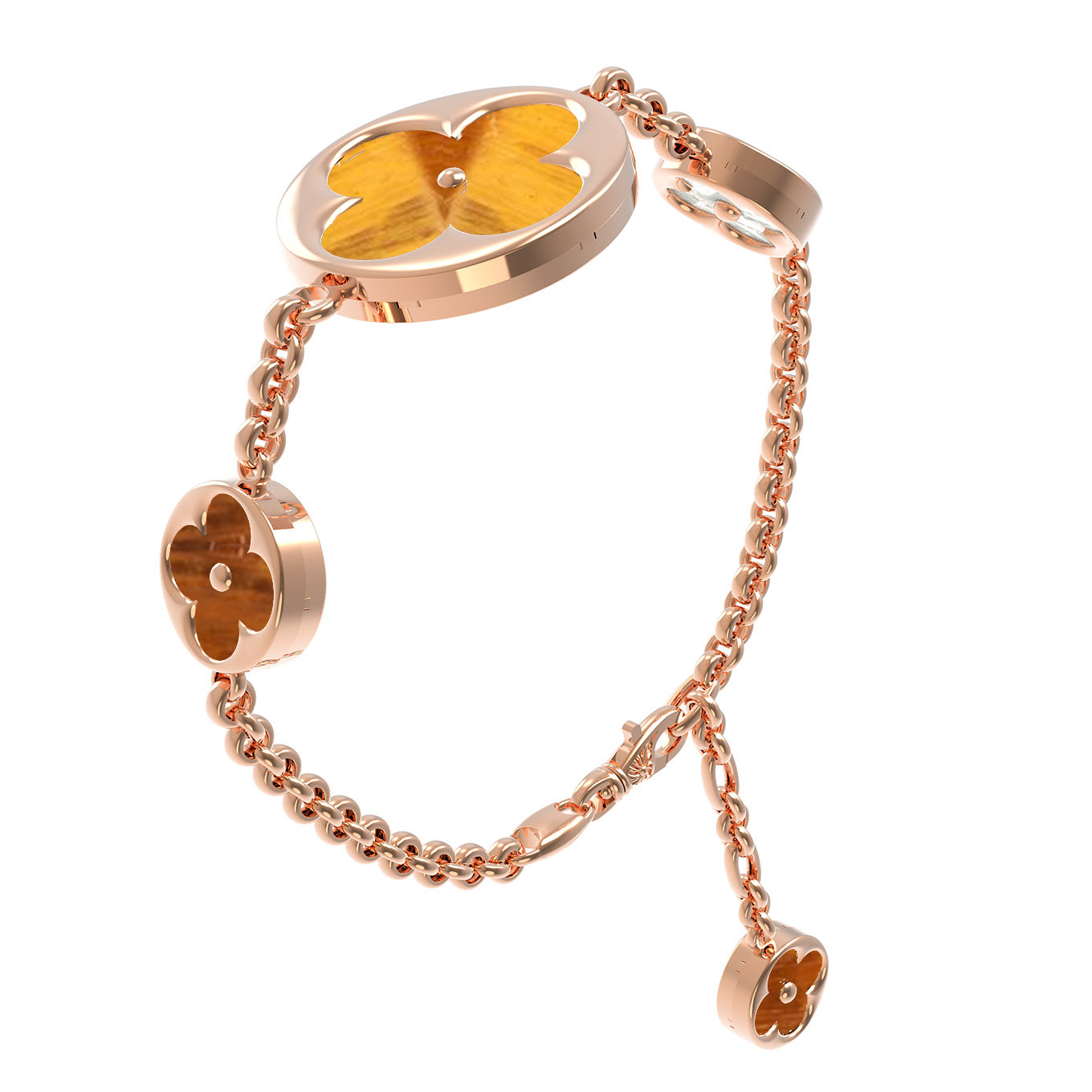 Изысканный браслет из коллекции De Luxe — Амальфи станет безупречным дополнением вашего образа, подчеркивая статус и безупречный вкус. Это украшение выполнено из благородного красного золота 585 пробы, которое придает изделию теплое и сияющее свечение. Особое очарование браслету придает утонченный дизайн: вставки в форме клевера гармонично сочетают в себе природную красоту тигрового глаза оранжевого оттенка и нежное мерцание перламутра. Всего в изделии предусмотрено 4 вставки круглой формы, расположенные на изящной цепочке.