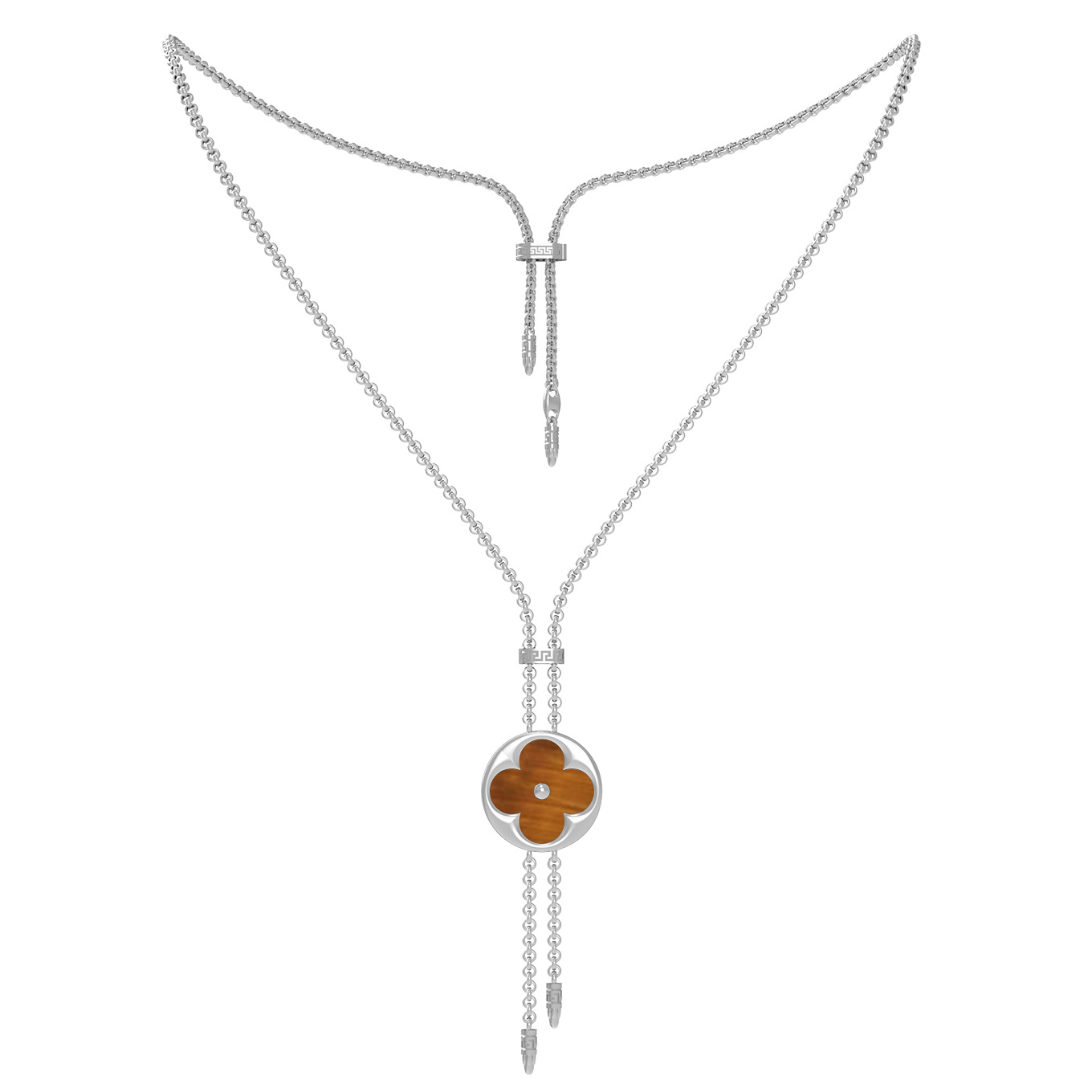 Колье из белого золота 585 пробы из коллекции De Luxe — Амальфи воплощает в себе лаконичность и благородство современного ювелирного дизайна. Это изделие станет изысканным акцентом вашего образа, подчеркивая индивидуальность и безупречный вкус. Украшение выполнено в форме клевера, что придает ему особенный шарм и символическое значение.