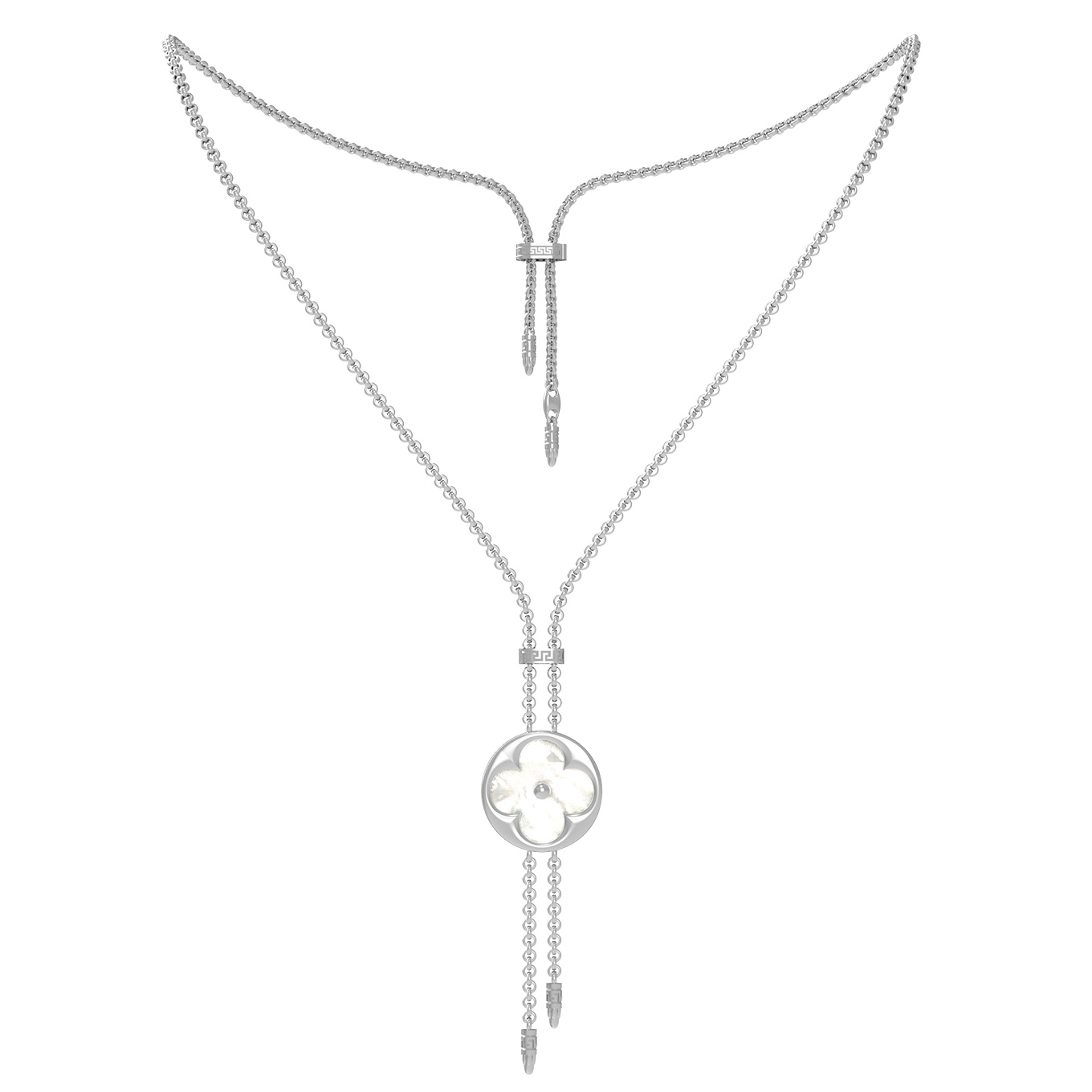 Элегантное колье из белого золота 585 пробы станет ярким акцентом вашего образа, подчеркивая безупречный вкус и статус. Украшение из коллекции De Luxe — Амальфи выполнено в стиле клевер, который давно стал символом удачи и изысканности. Центром композиции является декоративный элемент круглой формы, внутри которого гармонично сочетаются насыщенный синий лазурит и нежный перламутр. Благодаря сдержанному, но эффектному дизайну, данная модель является универсальным аксессуаром, подходящим как для женщин, так и для мужчин.
