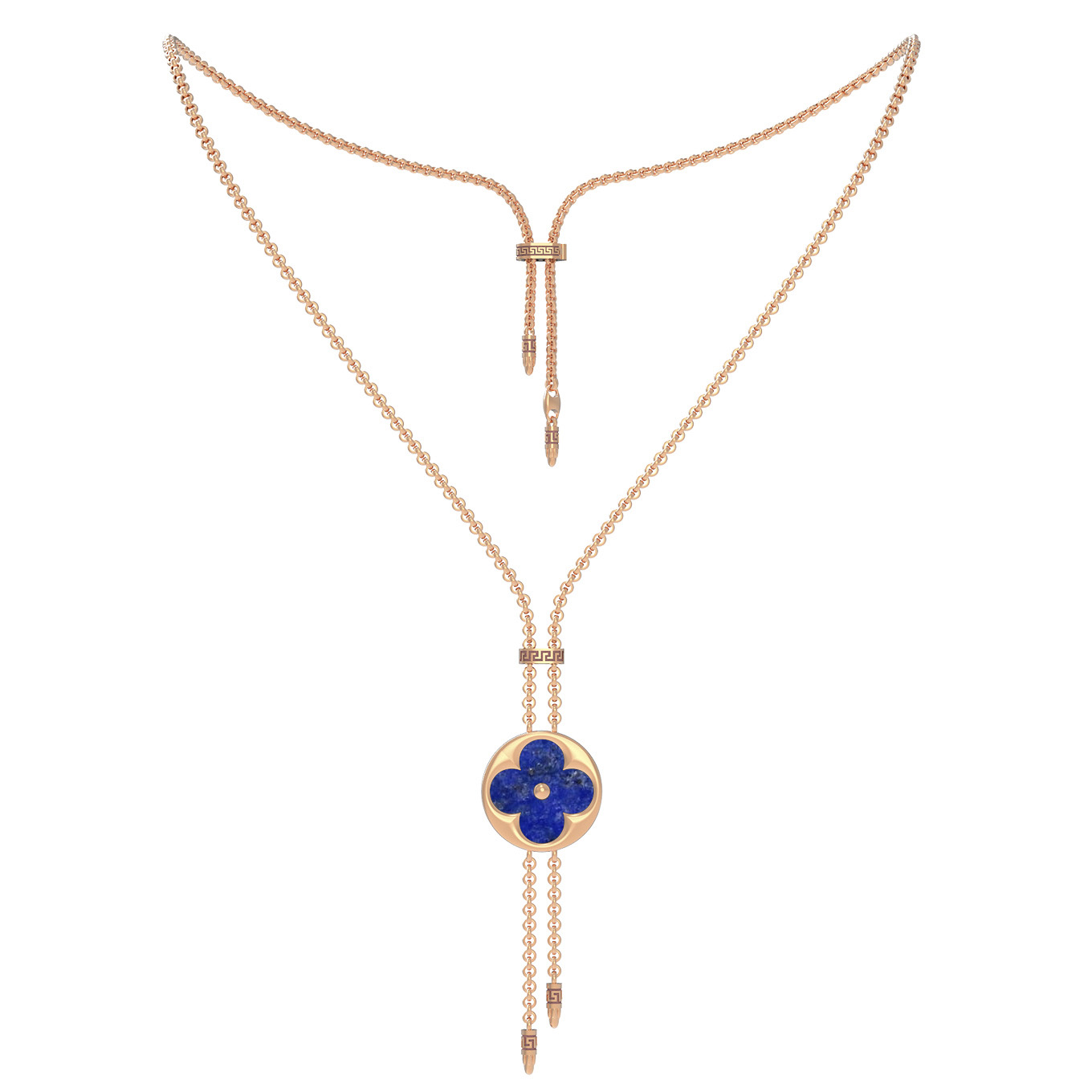 Это колье отличается оригинальной конструкцией — подвижный элемент позволяет регулировать длину, что делает аксессуар универсальным и удобным в повседневной носке. Теплый оттенок красного золота подчеркивает природную красоту камней и добавляет изделию благородного сияния. Благодаря лаконичному и в то же время узнаваемому дизайну, модель подходит как для женщин, так и для мужчин, предпочитающих стильные ювелирные акценты. Такое украшение идеально впишется в ваш гардероб и может быть дополнено другими изделиями из комплекта для создания завершенного образа.