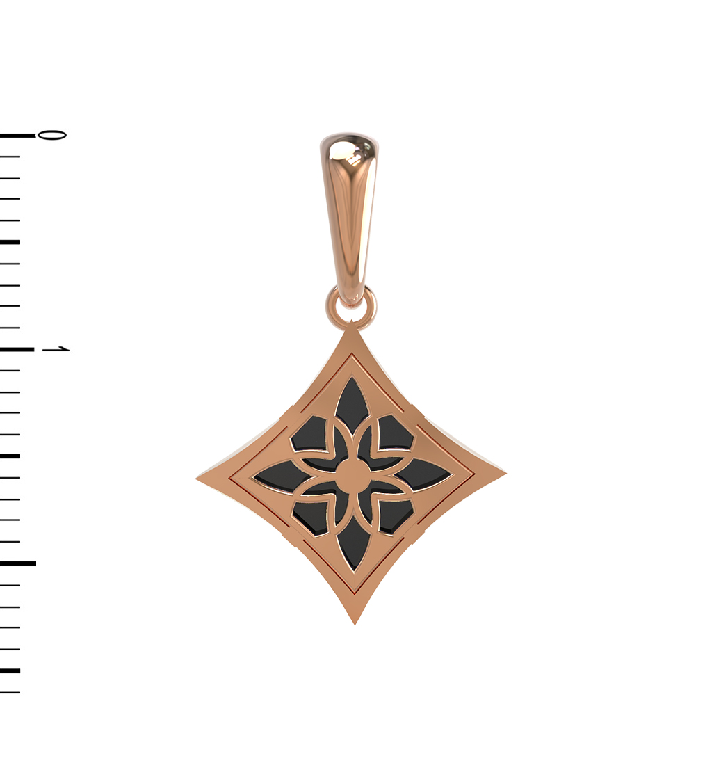 Элегантная подвеска из красного золота 585 пробы — это воплощение утонченного стиля и лаконичной роскоши. Ювелирное изделие из коллекции De Luxe — Амальфи притягивает взгляд своей геометрической формой ромба, внутри которой искусные мастера разместили изящный дизайн в виде клевера. Глубокий черный цвет оникса создает эффектный контраст с теплым оттенком драгоценного металла, придавая украшению особую выразительность и благородство.