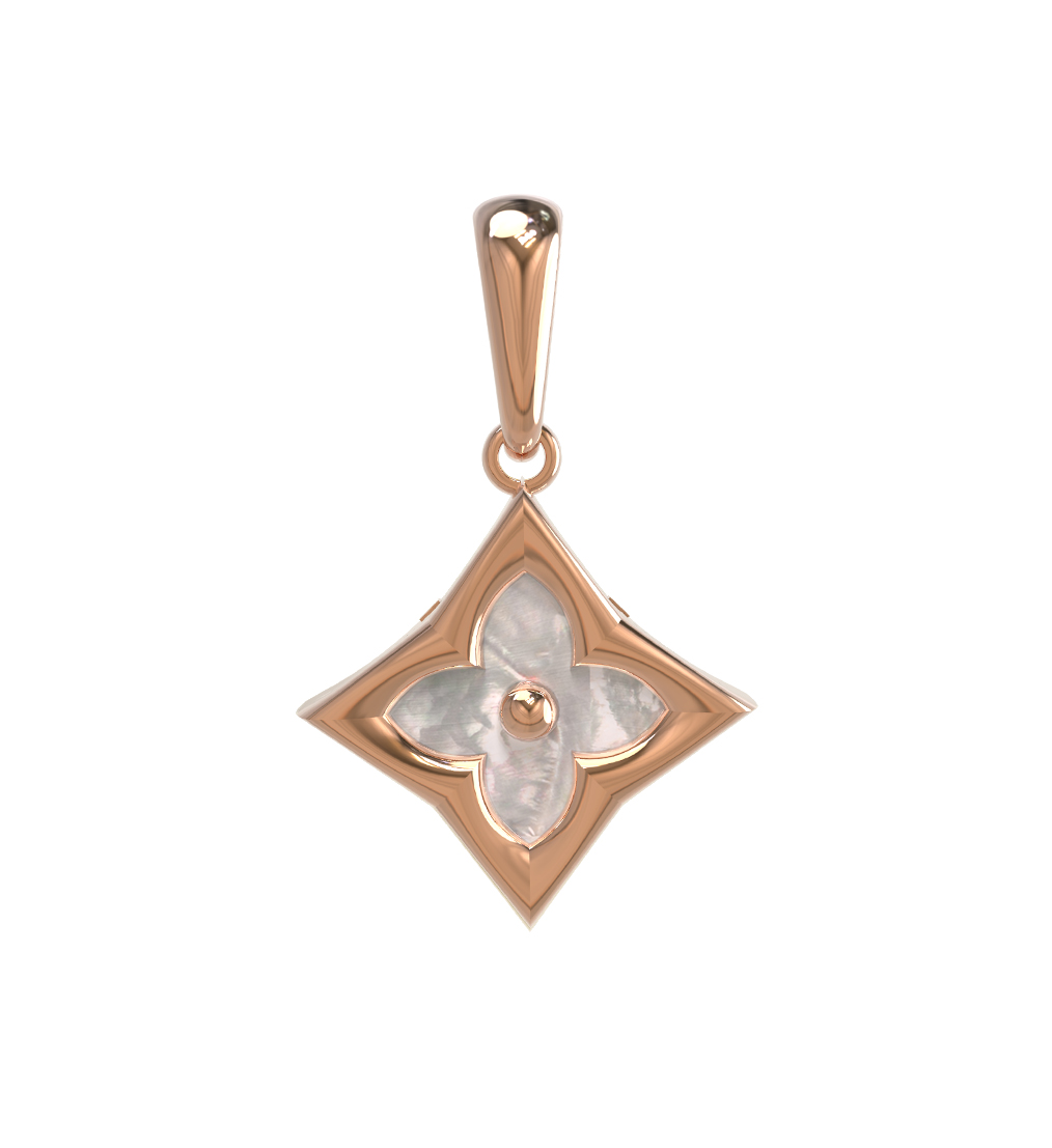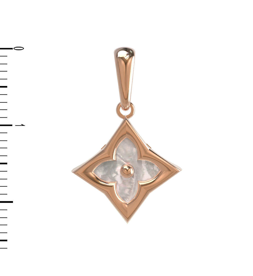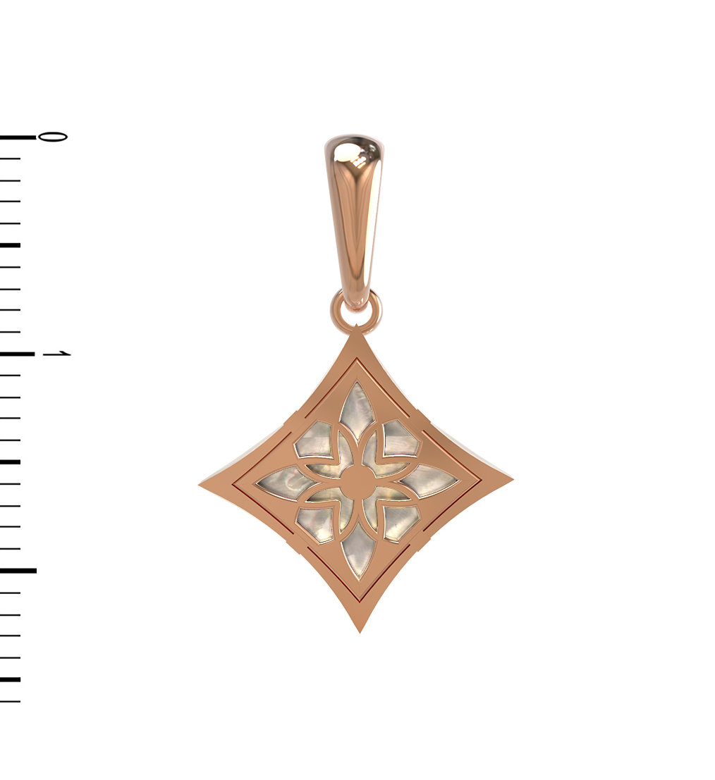 Дизайнерское решение в виде клевера придает изделию особое очарование и символичность. Плавные линии и качественное исполнение делают этот аксессуар универсальным дополнением к повседневному или вечернему наряду. Подвеска выполнена из красного золота, что гарантирует прочность и долговечность изделия. Гармоничное сочетание формы ромба и природного перламутра позволяет аксессуару органично смотреться как на женщинах, так и на мужчинах, подчеркивая индивидуальность владельца.