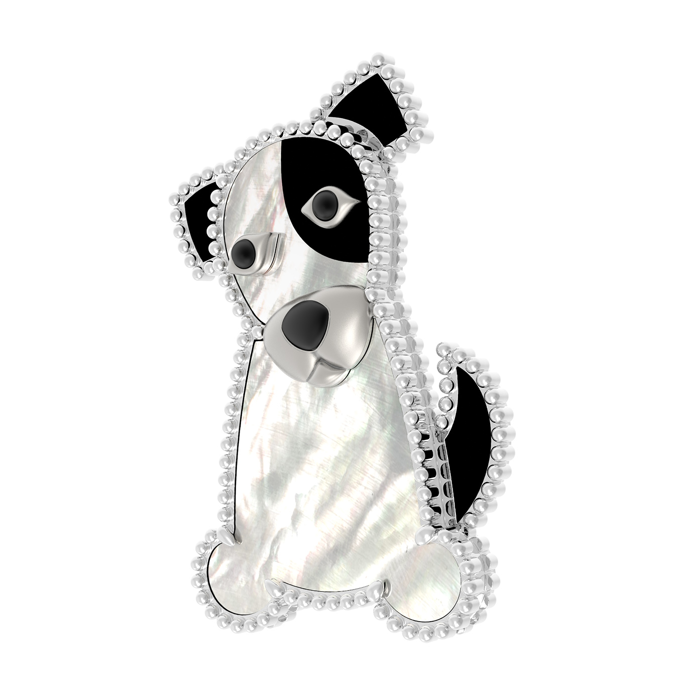 Элегантная брошь из белого золота 585 пробы станет ярким акцентом вашего образа. Это ювелирное украшение из коллекции De Luxe — В стране чудес выполнено в оригинальном дизайне: очаровательная фигурка собаки притягивает взгляд своей детализацией и контрастным сочетанием материалов. Благородный холодный блеск белого золота гармонично дополнен вставками из перламутра с его мягкими переливами и глубоким черным ониксом, создающим выразительные акценты.
