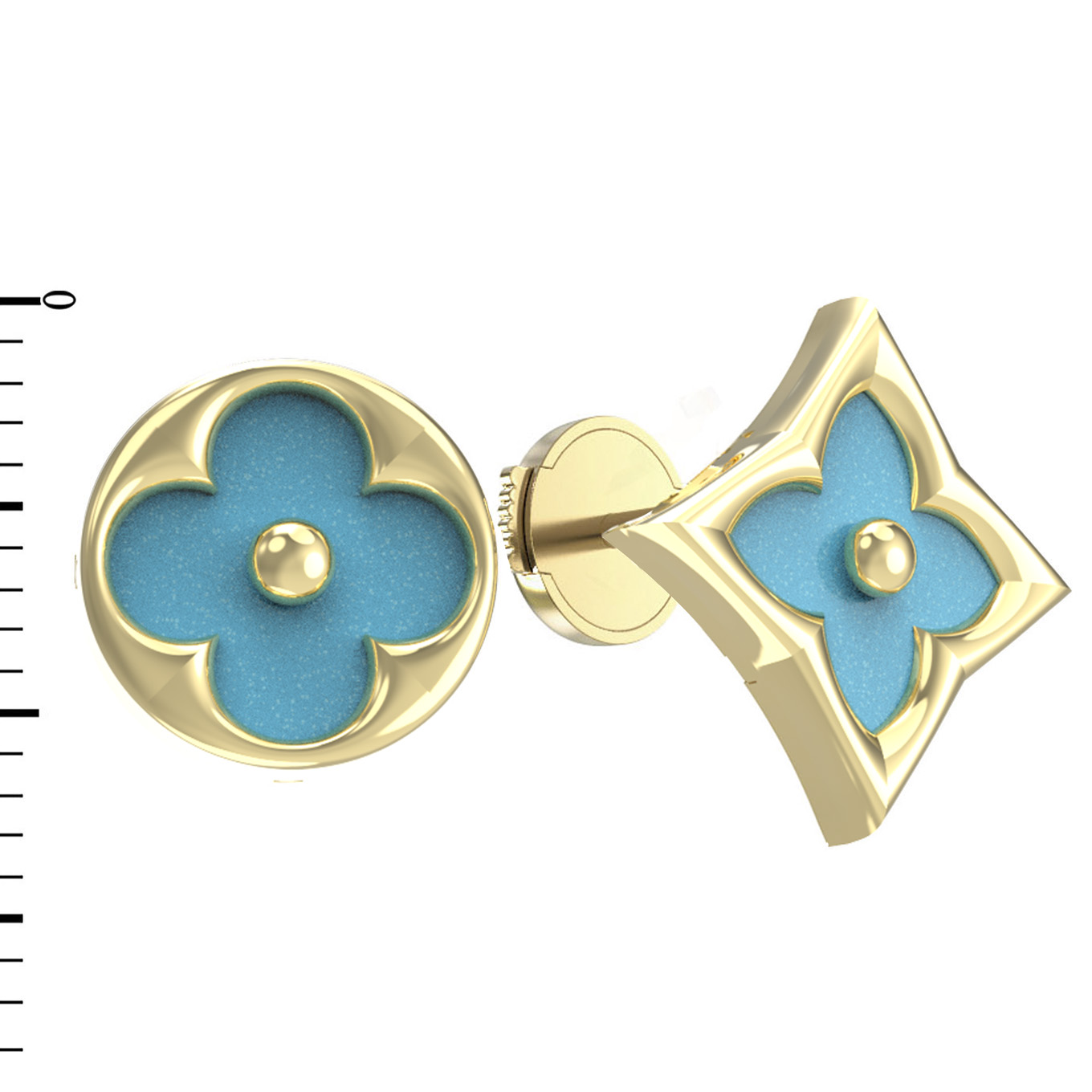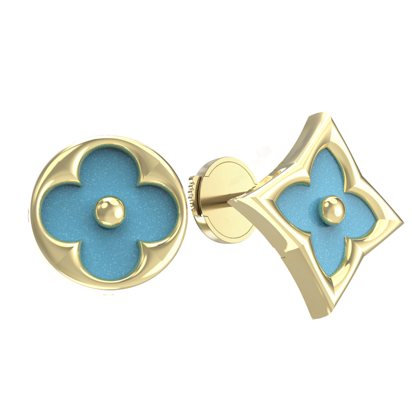 Серьги отличаются необычным и запоминающимся решением: вставки из натуральной бирюзы представлены в двух различных геометрических формах — круг и ромб. Насыщенный бирюзовый цвет вставок эффектно контрастирует с благородным лимонным оттенком золота, создавая динамичный и свежий визуальный эффект. В каждой серьге расположено по одной вставке, а общее количество вставок составляет 2. Лаконичный акцент в центре добавляет композиции завершенность.