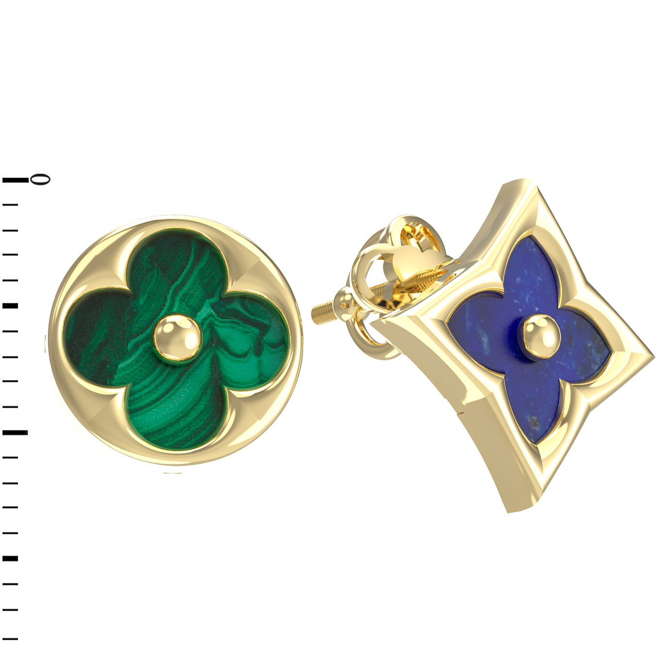 Откройте для себя воплощение утонченного стиля в серьгах из лимонного золота 585 пробы из коллекции De Luxe — Амальфи. Это ювелирное изделие привлекает внимание своим уникальным дизайном в форме клевера, который гармонично объединяет классические каноны и современные тренды. В качестве центральных элементов выступают две вставки из натуральных камней: глубокий синий лазурит и насыщенный зеленый малахит. Сочетание благородного лимонного золота с яркими оттенками вставок создает неповторимый контраст, подчеркивающий статусность украшения.