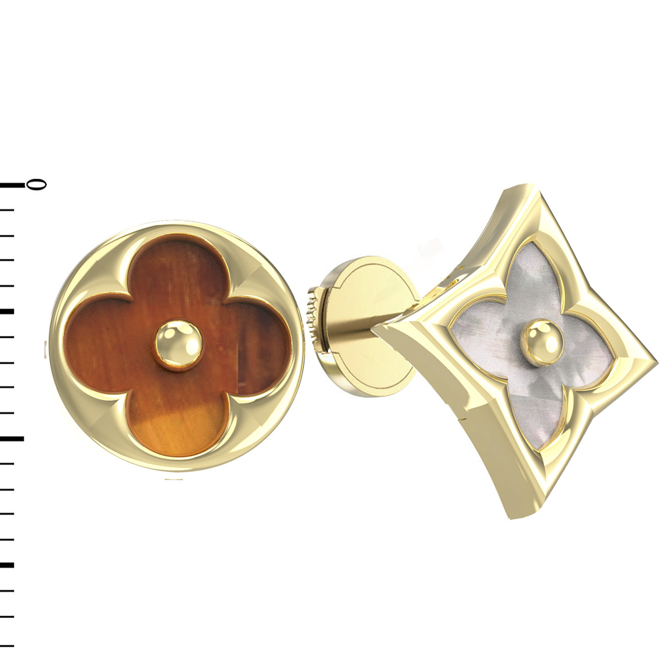 Элегантные и необычные серьги из лимонного золота 585 пробы станут ярким акцентом вашего образа. Дизайн украшения, выполненный в узнаваемом стиле клевер, привлекает внимание своей лаконичной геометрией и гармоничным сочетанием материалов. В центре одной серьги расположен круг, инкрустированный оранжевым тигровым глазом, а вторая серьга выполнена в форме ромба с вставкой из нежного перламутра. Это стильное контрастное сочетание делает изделие универсальным дополнением к повседневному или вечернему наряду.