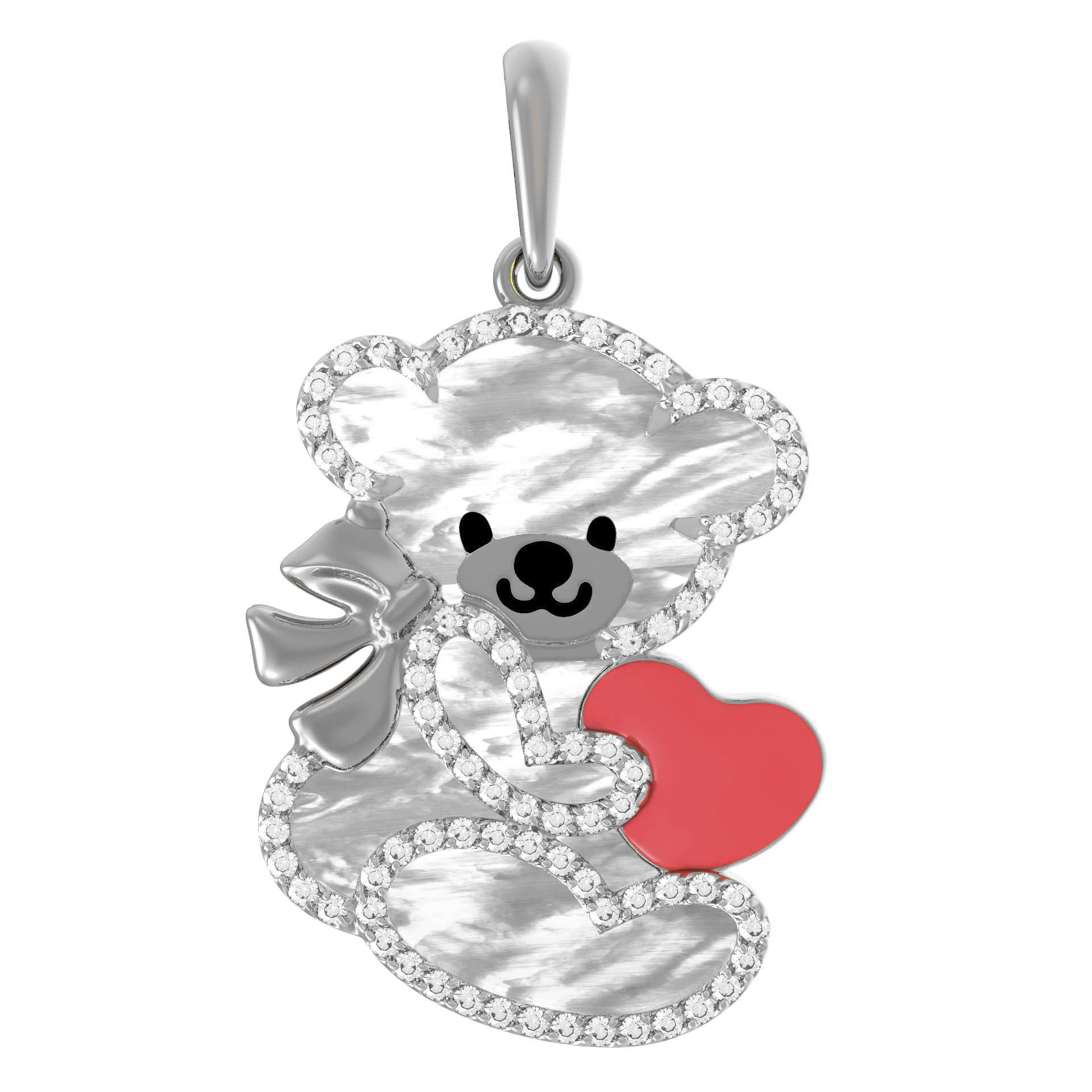 Центральным элементом композиции является искусная работа с цветом и фактурой. Фигура медвежонка, инкрустированная 79 фианитами круглой формы, создает эффектное мерцание, которое притягивает взгляды. Белый перламутр придает изделию особое благородство, а акцент в виде яркого элемента с эмалью добавляет украшению живости и индивидуальности. Белый цвет материала идеально гармонирует с холодным блеском вставок, создавая сбалансированный и современный аксессуар.