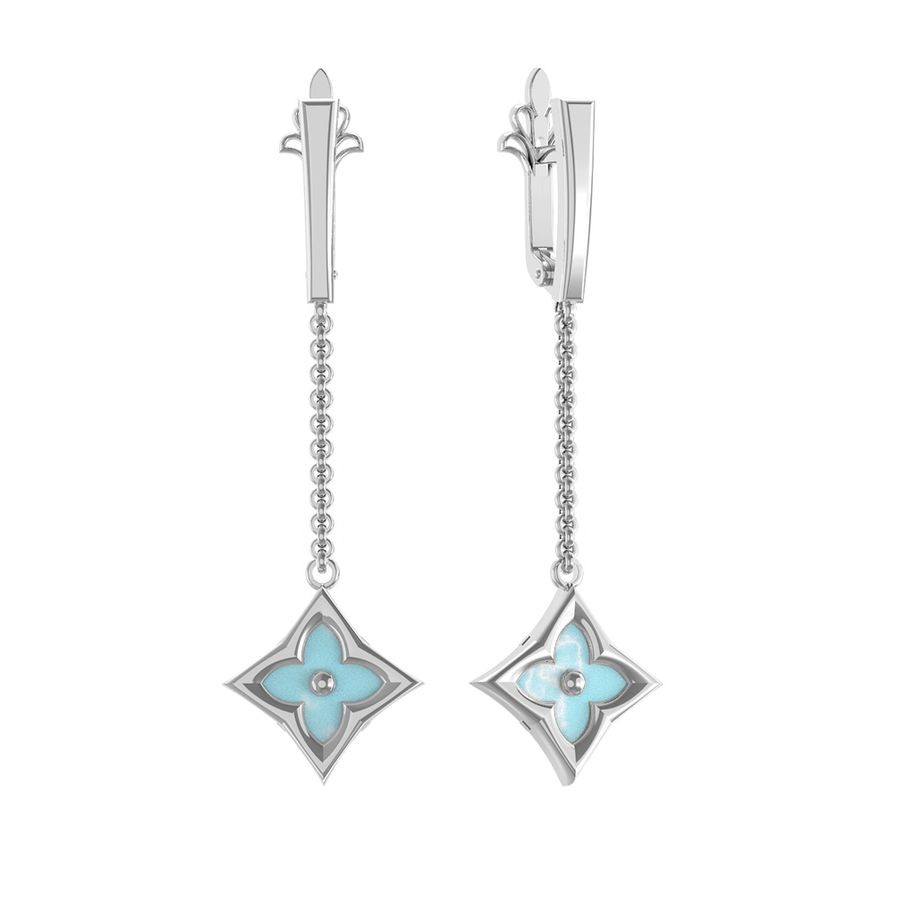 Серьги из белого золота c бирюзой