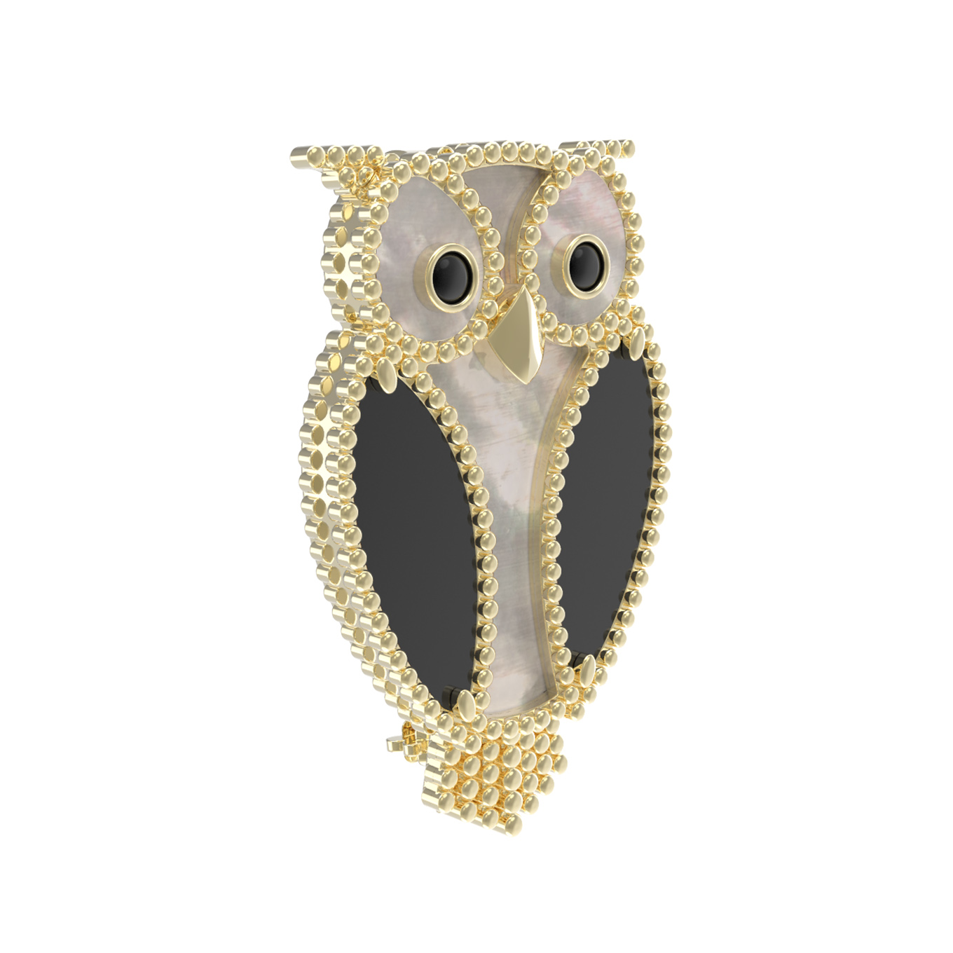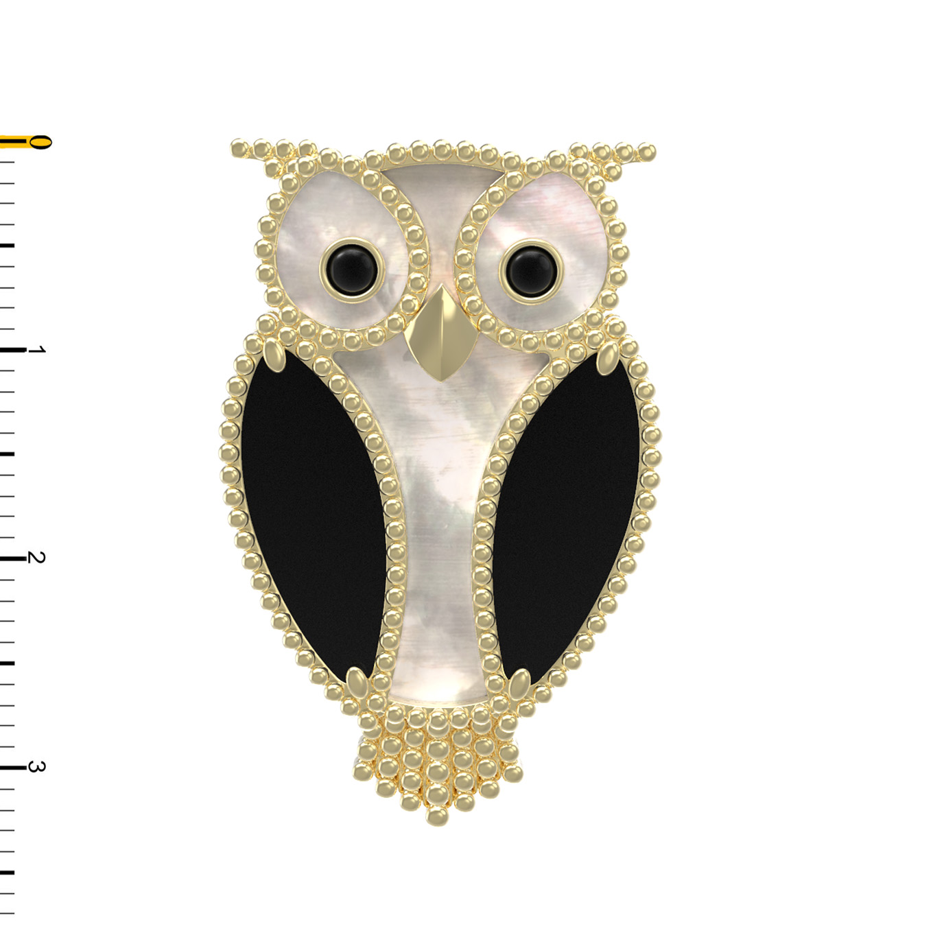 Эта брошь — универсальное решение для тех, кто ценит эстетику и качество. Изделие органично вписывается в комплекты украшений, становясь центральным элементом стильного ансамбля. Брошь в виде совы привлекает взгляд игрой света на перламутровой поверхности и глубиной оникса, выделяясь среди других аксессуаров своим лаконичным и выразительным исполнением. Выбирая данную модель, вы приобретаете не просто украшение, а символ индивидуальности, который будет актуален долгие годы.