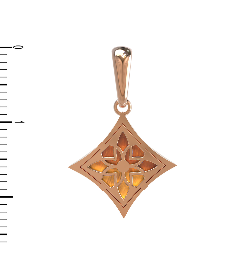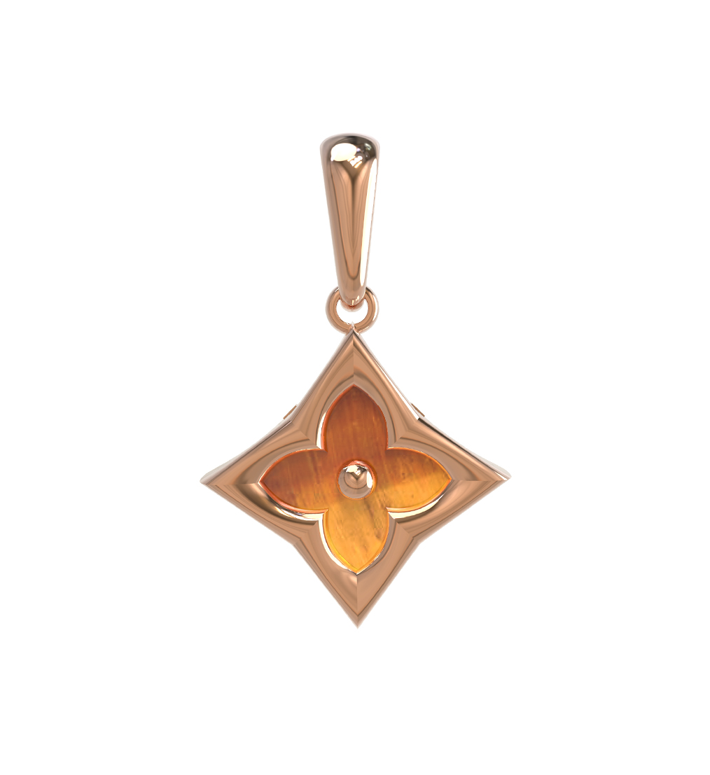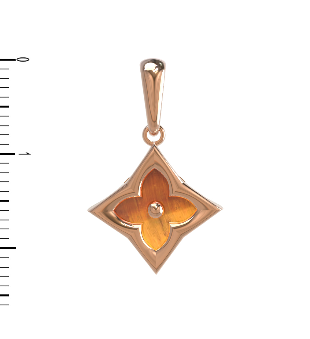 Подвеска из красного золота 585 пробы — это воплощение изящества и стиля. Ювелирное изделие из коллекции De Luxe — Амальфи привлекает внимание своим необычным дизайном в форме клевера, который гармонично вписан в геометрически выверенный контур ромба. Теплый оттенок драгоценного металла эффектно подчеркивает красоту центральной вставки — натурального тигрового глаза. Этот камень насыщенного оранжевого цвета придает украшению глубину и выразительность, делая его по-настоящему притягательным аксессуаром.