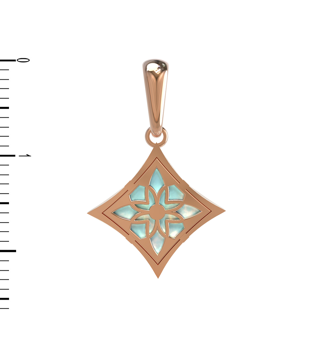 Изысканная подвеска из красного золота 585 пробы станет ярким акцентом в вашем образе. Дизайн украшения, выполненный в форме клевера, олицетворяет элегантность и утонченный стиль, характерный для коллекции De Luxe — Амальфи. Центральным элементом композиции является вставка из бирюзы небесно-голубого оттенка, которая имеет необычную форму ромба. Этот контраст теплого красного золота и прохладного цвета вставки создает гармоничный дуэт, притягивающий восхищенные взгляды.