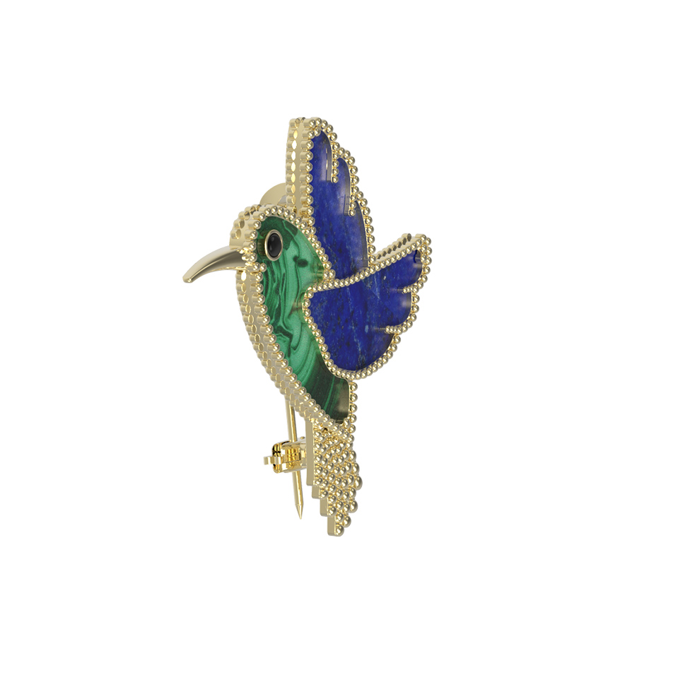 Брошь из лимонного золота c эмалью, лазуритом и малахитом