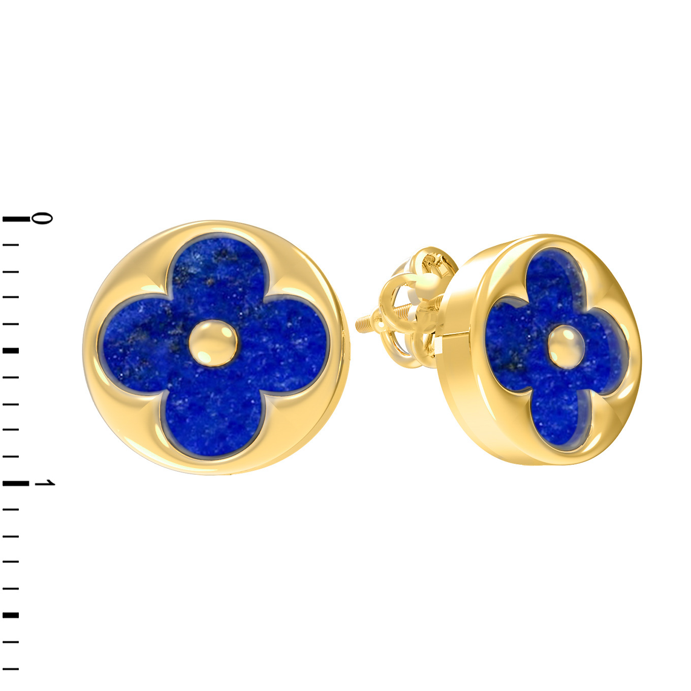 Элегантные серьги из лимонного золота 585 пробы из коллекции De Luxe — Амальфи станут ярким акцентом в вашем образе. Дизайн украшения выполнен в форме изящного клевера, что придает аксессуару нотки романтики и символизма. Центром композиции выступает глубокий и насыщенный лазурит синего цвета круглой формы, эффектно контрастирующий с теплым сиянием драгоценного металла.