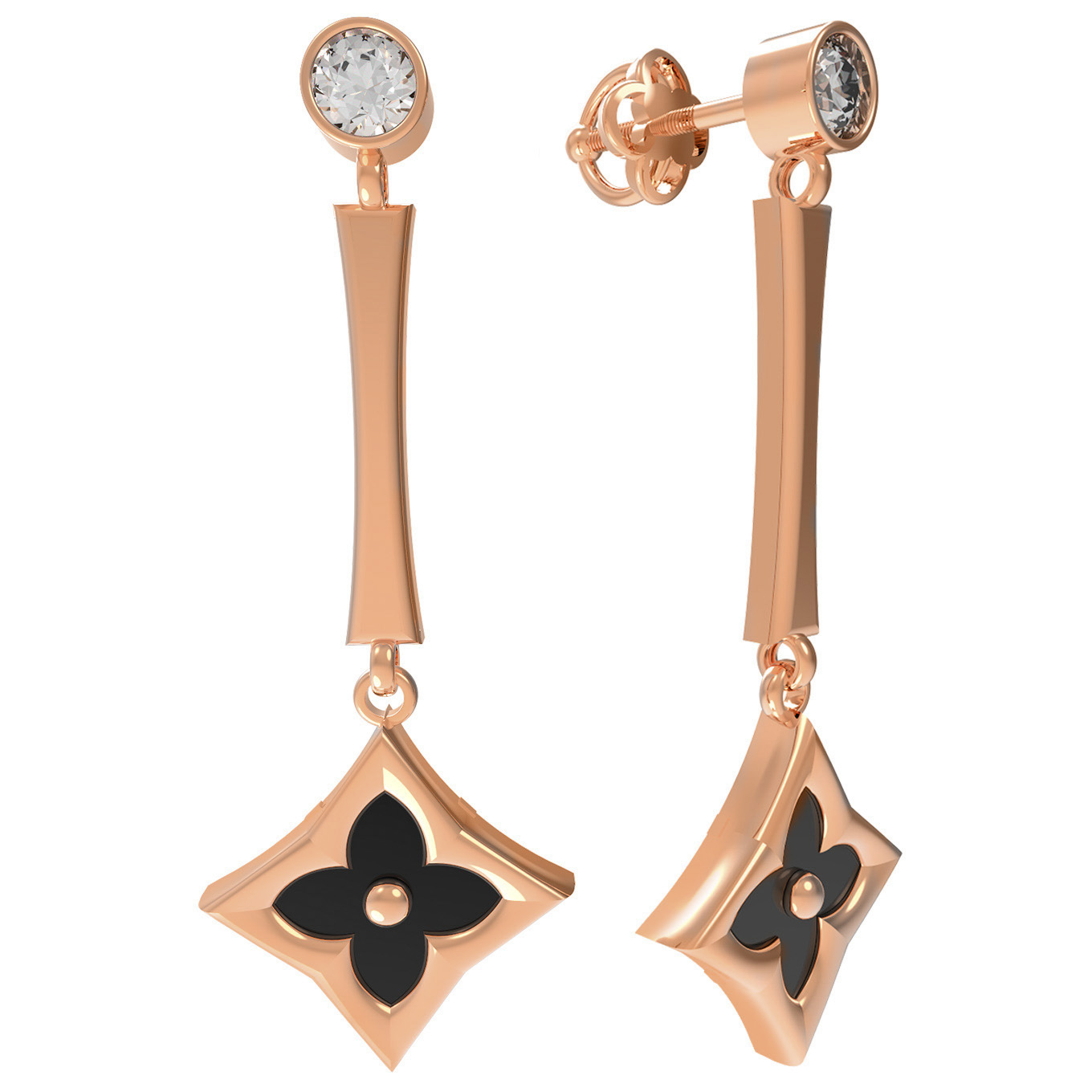 Серьги из золота c фианитом и ониксом