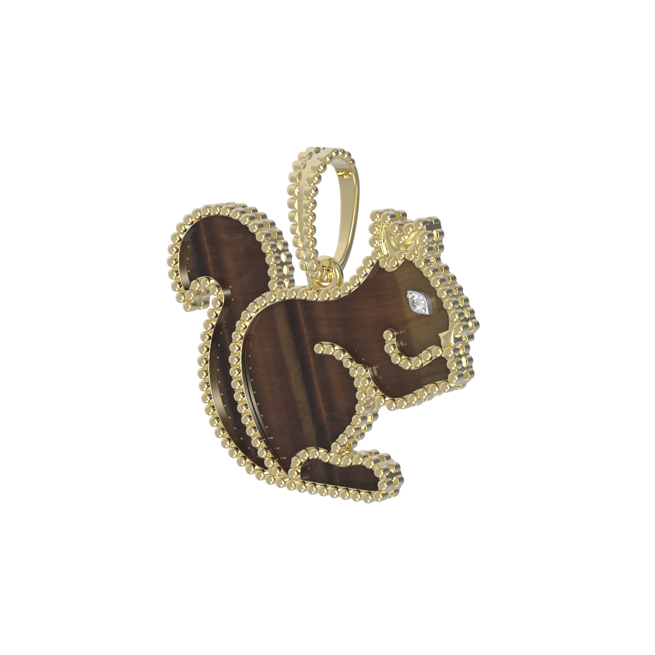 Подвеска из лимонного золота c бриллиантами и тигровым глазом