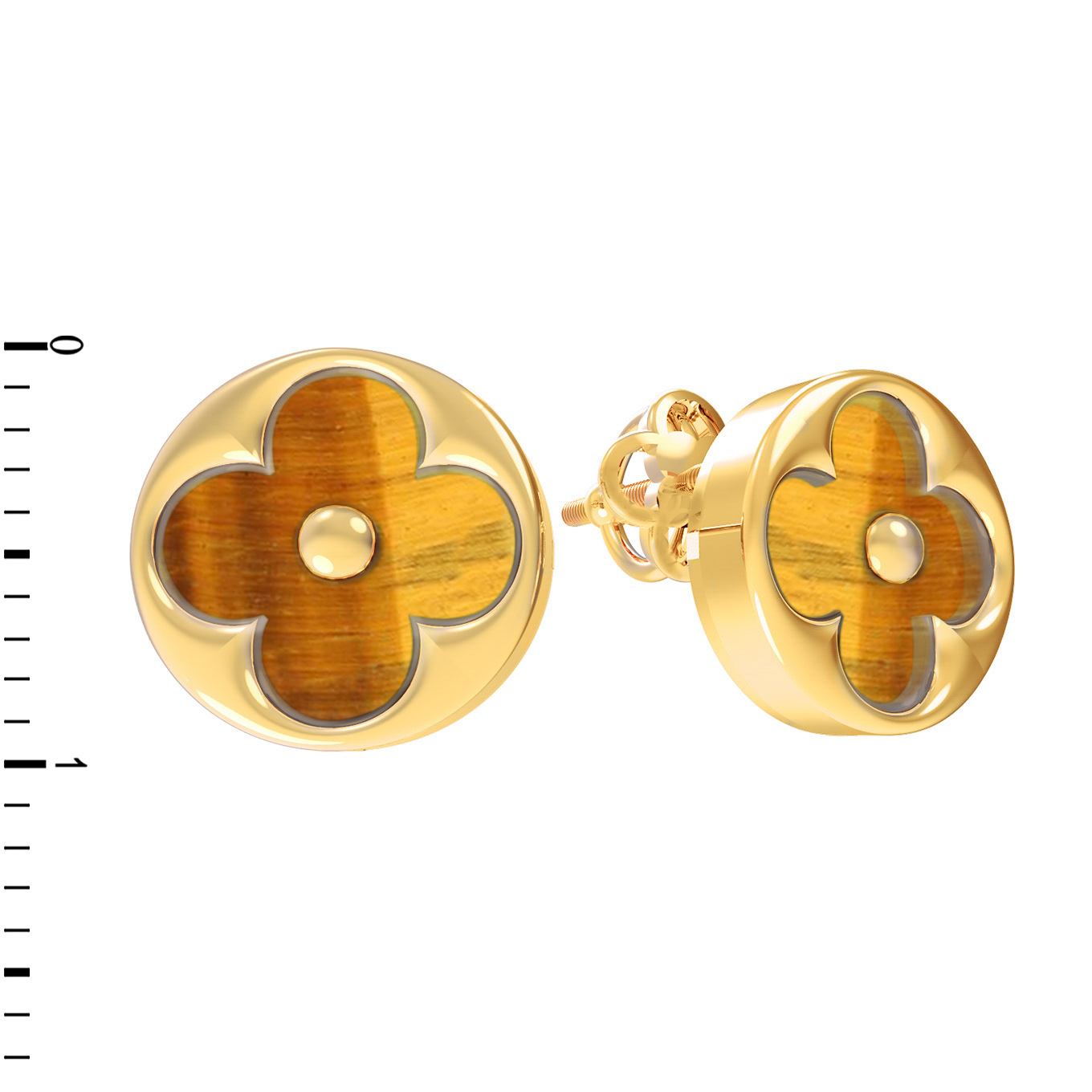 Эти серьги универсальны — они созданы как для женщин, так и для мужчин, предпочитающих сдержанные и качественные ювелирные аксессуары. Изысканный оттенок лимонного золота подчеркивает природную красоту тигрового глаза, обеспечивая красивую игру света при каждом движении. Модель идеально подходит для создания законченных ансамблей, так как хорошо сочетается с другими украшениями. Данные серьги — это пример мастерства и стиля, где лаконичность форм встречается с благородством материалов. Добавьте этот аксессуар в свою коллекцию, чтобы подчеркнуть статус и безупречный вкус в любой ситуации.
